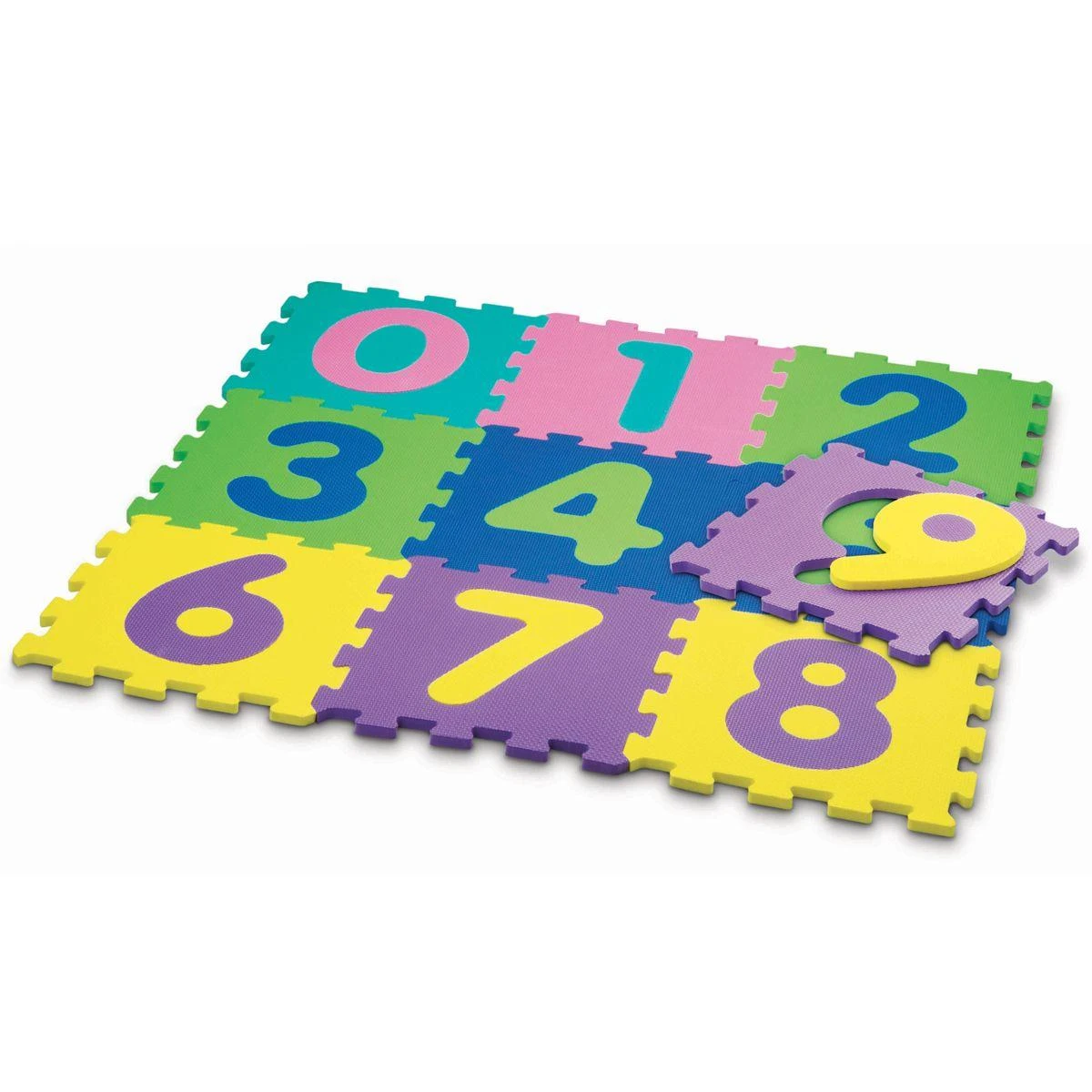 10 dalles chiffres en mousse 30 x 30 cm. 10 dalles en mousse puzzle numérotées. Elles s’encastrent facilement pour créer un tapis de jeu ou des formes.