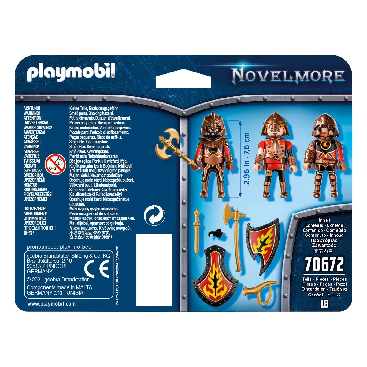 Le coffret 3 combattants Burnham Raiders Playmobil Novelmore 70672 contient trois combattants Burnham Raider, une épée, deux haches et deux boucliers. Votre enfant va pouvoir se lancer dans l’aventure !