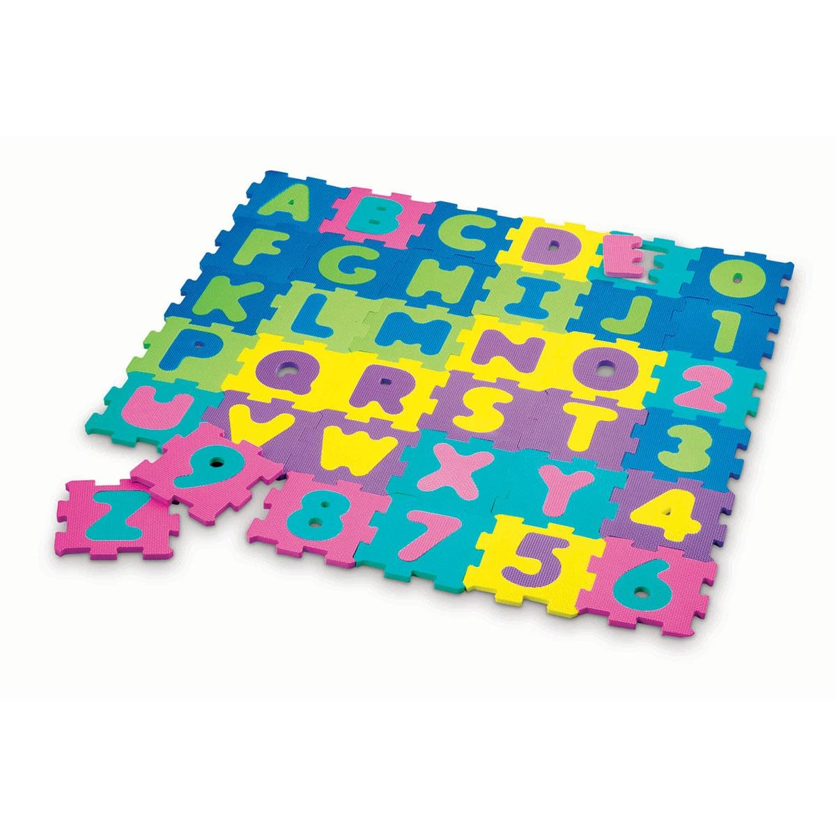 36 dalles alphabets et chiffres 16 x 16 cm. 36 dalles puzzle en mousse avec lettre et chiffres amovibles. Faciles à encastrer pour créer une aire de jeu de 90 X 90 cm.