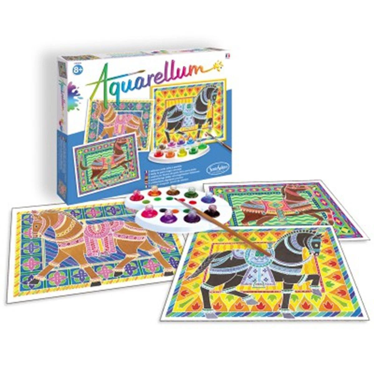 Réaliser ses premiers tableaux en toute confiance et sans avoir peur de déborder grâce au sertissage qui permet de guider l’application de la peinture, c’est possible. Avec Aquarellum Chevaux de Sentosphère, les enfants peuvent dès 8 ans développer leur sens artistique en réalisant ces 3 tableaux. Une première approche de la peinture qui avec l’aquarelle permettra aux plus jeunes de s’aguerrir et aux plus agés de s’ouvrir à la pratique des arts.