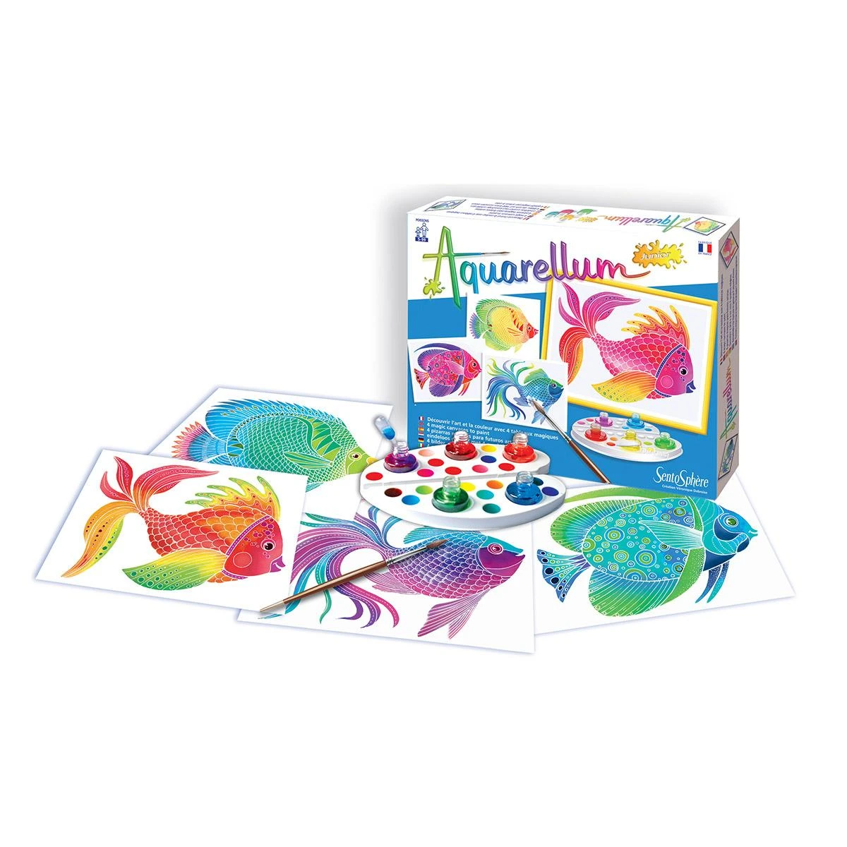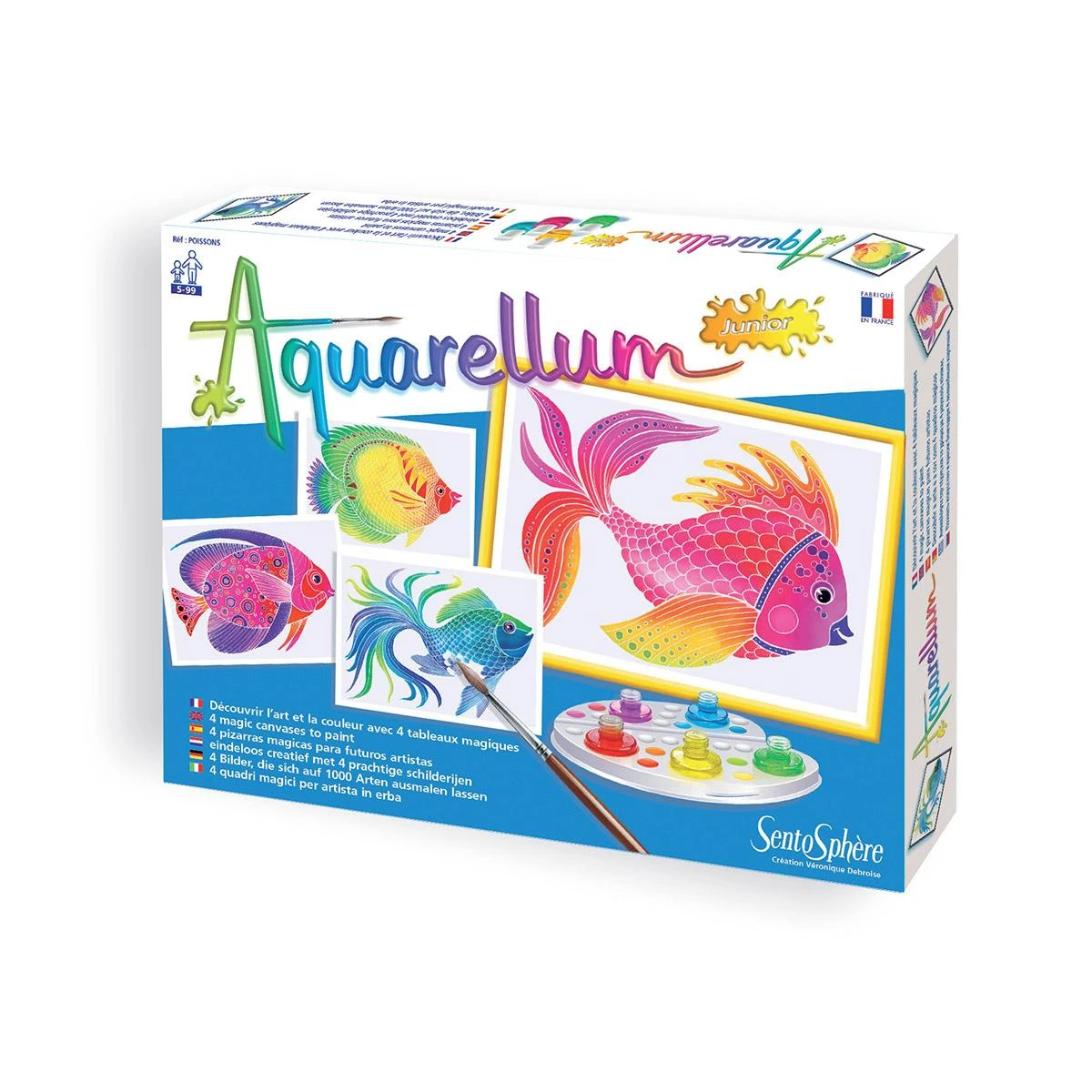 Avec Aquarellum junior : Poissons, les enfants laissent parler leur créativité et rendent ces créatures de l’eau toujours plus colorées.