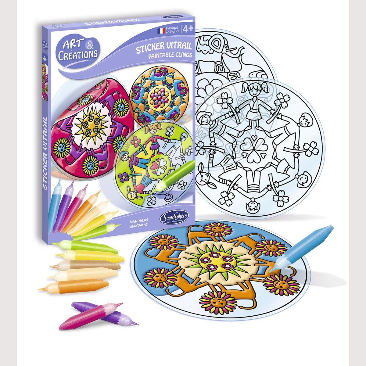 Avec le coffret Art et Créations : Stickers mandalas vitrail de Sentosphère, votre enfant dessine des mandalas sur des vitraux. Il utilise les tubes de peintures vitrail pour réaliser des mandalas étincelants. Les vitraux pourront ensuite décorer le réfrigérateur, les fenêtres, leur bureau, et n’importe quelle autre surface lisse. La pointe fine et la texture fluide de la peinture permettent d’atteindre tous les interstices des dessins. Ainsi, votre enfant développe sa créativité et laisse parler son imagination.