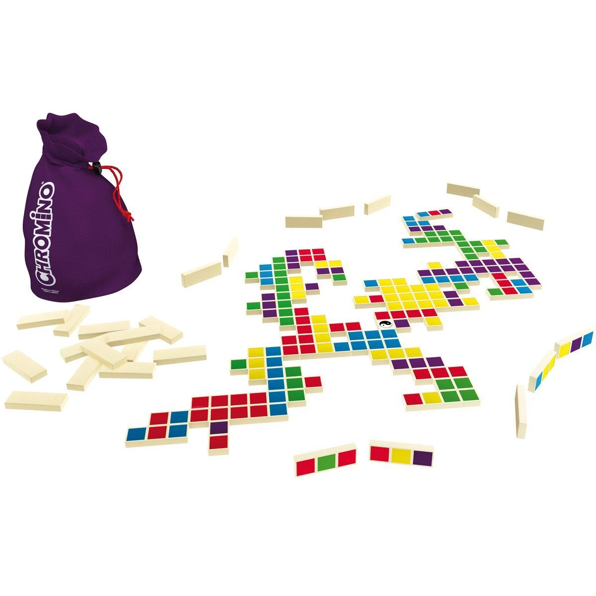 Le jeu Chromino Deluxe de Asmodee est l’alternative idéale aux célèbres dominos ! Le but est de connecter un de ses Chromino aux autres en faisant correspondre deux couleurs. Et si aucune combinaison n’est possible avec les Chromino de son jeu, il faut en piocher un nouveau. Celui que dépose son dernier Chromino remporte la partie !