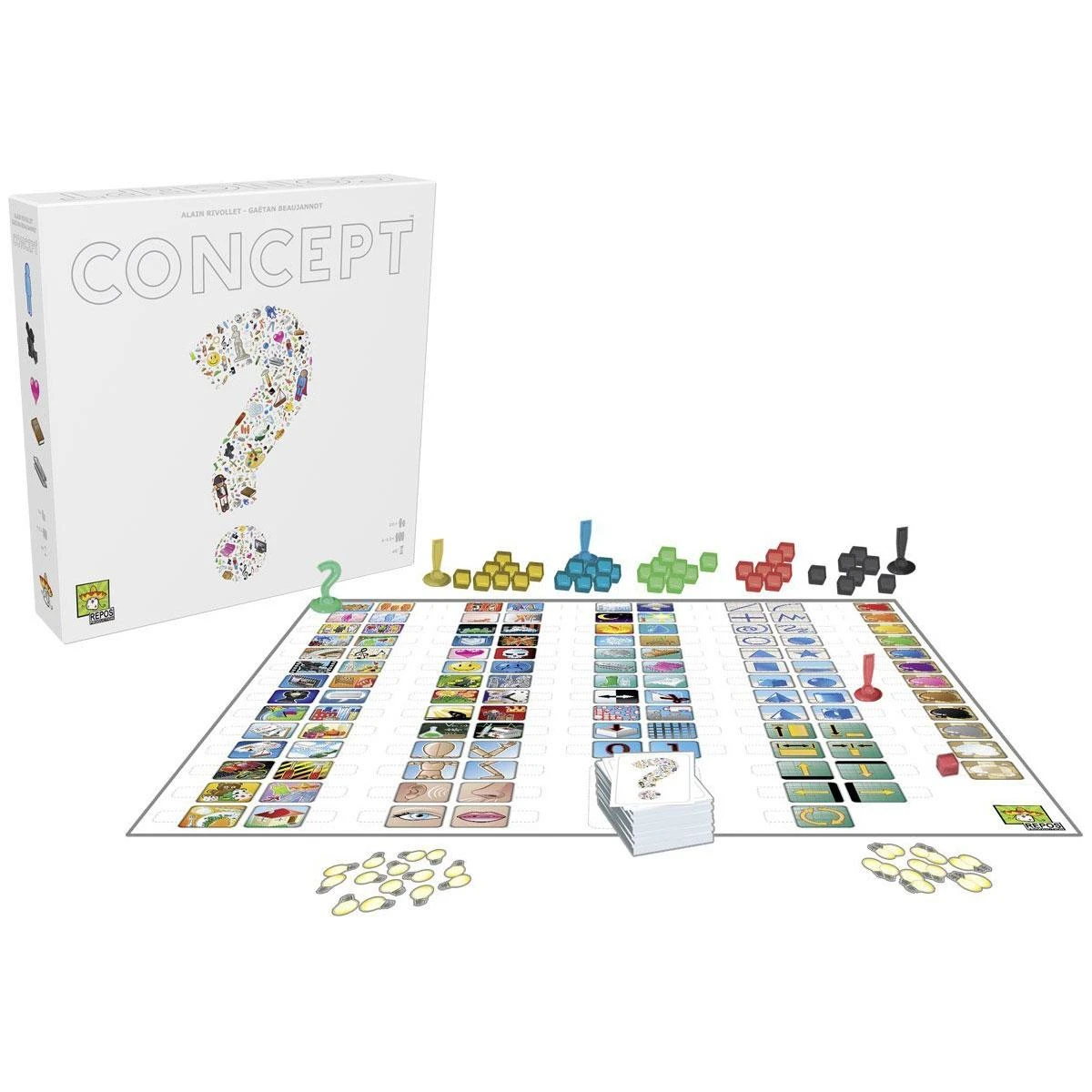 Faire deviner des mots, des animaux ou encore des objets est chose facile pour vous ? Pourquoi ne pas essayer Concept, le jeu qui consiste à faire deviner aux autres joueurs un concept au travers d’images et non plus d’un mime. Moments de délire garantis ! Par équipes, faites deviner des mots aux autres joueurs en plaçant des pions sur différentes icônes du plateau. Le joueur qui trouve le mot et l’équipe qui l’a fait deviner remportent des points de victoire. Pour gagner, il faut cumuler le plus de points en fin de partie. Mais qu’importe le vainqueur : tout le monde s’amusera à interpréter les concepts et à commenter la façon de faire deviner des autres joueurs !