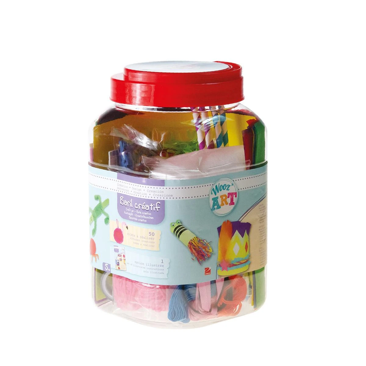 Le baril créatif Wooz’art contient plus de 100 pièces pour réaliser 50 objets de toute forme.