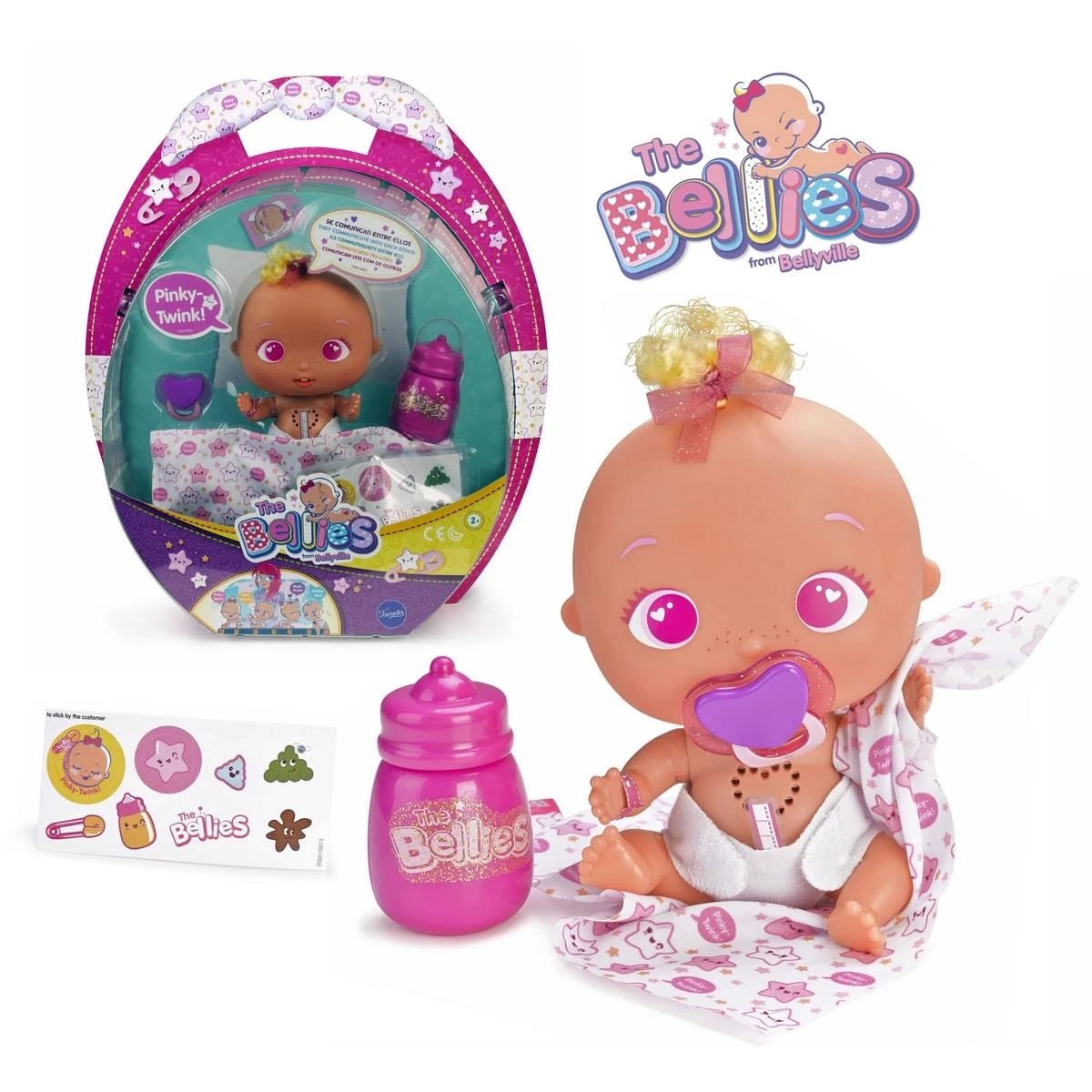 Contient : 1 poupon Bellies Pinky-Twink, 1 biberon, 1 tétine, 1 couverture, 1 certificat de naissance et des stickers.