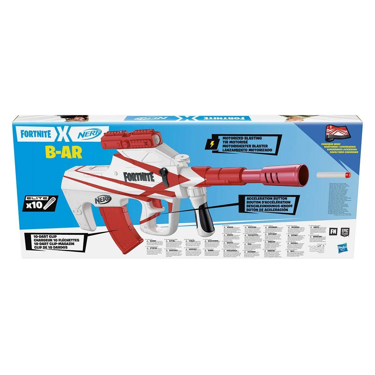 Ce blaster Nerf Fortnite B-AR motorisé est inspiré du jeu vidéo Fortnite et est décoré avec le revêtement Convergence. Inclut un chargeur 10 fléchettes amovible et 10 fléchettes en mousse Nerf Elite officielles. C’est parti pour la bataille !