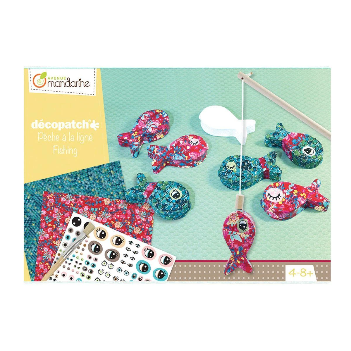 Dans cette boîte créative de la marque Avenue Mandarine, votre enfant part à la pêche aux poissons avec Décopatch. Au menu, 8 poissons magnétiques à décorer à l’aide du papier Décopatch puis à pêcher plus rapidement que son adversaire à l’aide de 2 cannes à pêche magnétiques. Une activité fun et créative !