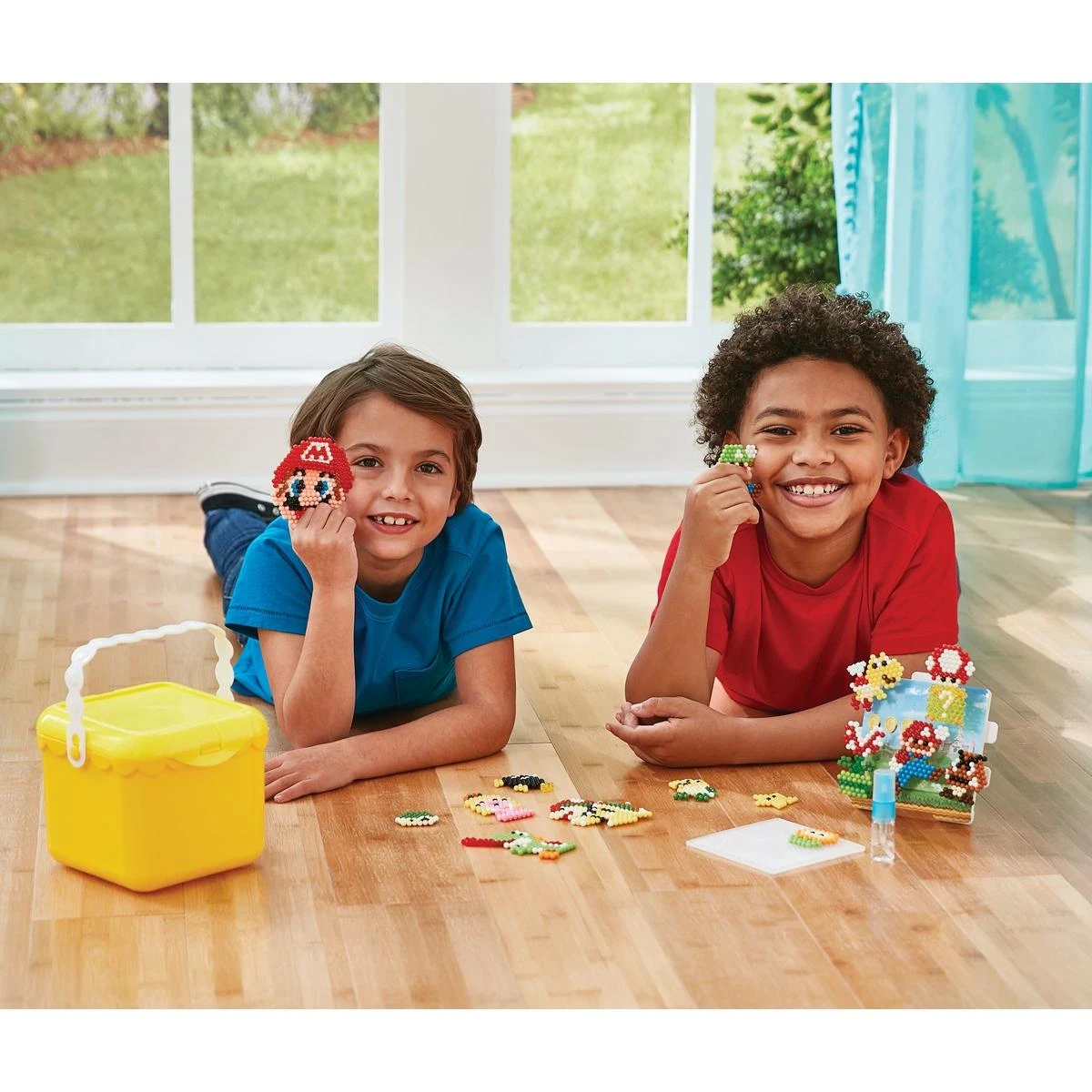 La Box Aquabeads Super Mario d’Epoch comprend 2500 perles de différentes formes (dont les perles étoiles) et couleurs, la base de création pour les fixer et décorer sa chambre et l’essentiel pour des heures de créativité. Un coffret parfait pour développer concentration et habileté manuelle.