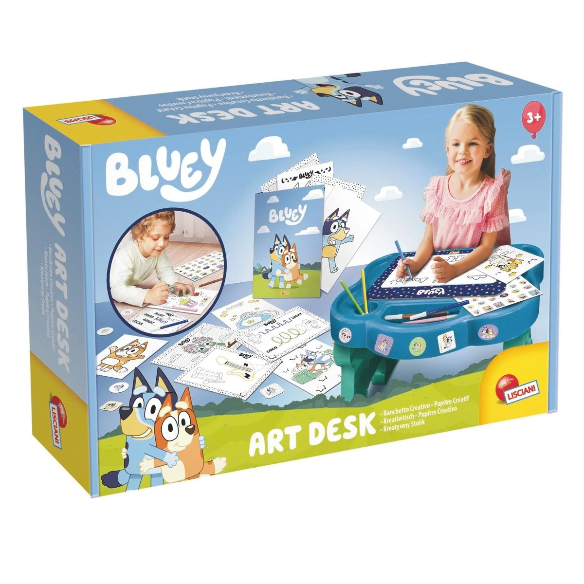 Le Bureau créatif Bluey est un kit complet pour jouer et colorier avec Bluey et ses amis ! Il offre tout le matériel pour s’amuser : 1 tableau effaçable, des livres de coloriage, 1 classeur, des autocollants, de la peinture et bien plus encore !