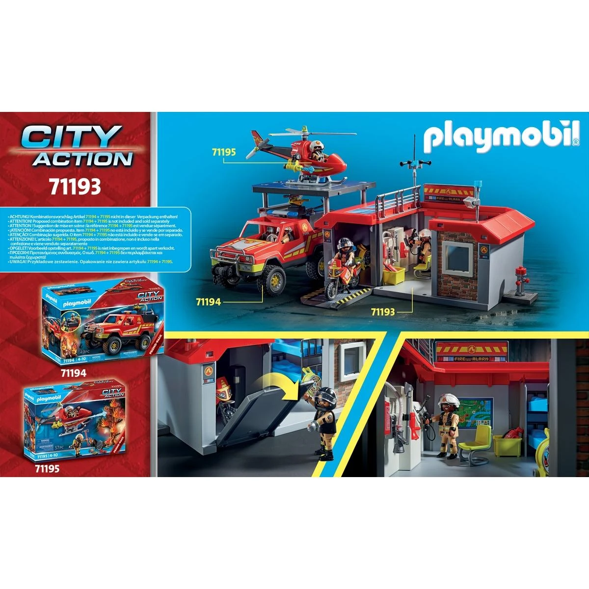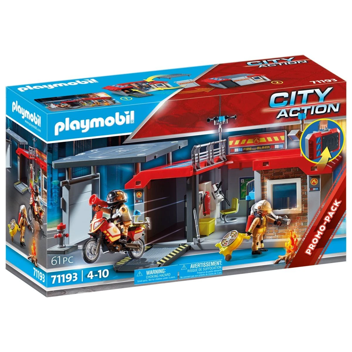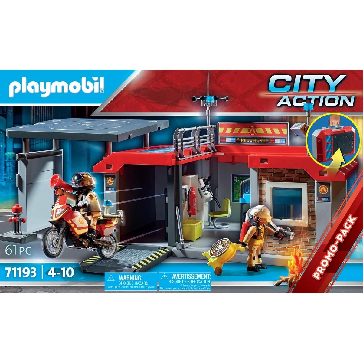 Alerte ! Alerte ! Alerte ! Avec la Caserne Pompiers transportable Playmobil City Action 71193 les gardiens du feu sont toujours prêts à intervenir. En plus d’une moto et son garage, la caserne dispose d’un héliport. Lorsque les pompiers sont de garde, ils peuvent utiliser deux couchettes pour se reposer. Il y a de nombreux rangements à l’intérieur pour y stocker tous les équipements. Pour le transport, tous les personnages doivent être rangés, la rampe de garage repliée et toutes les fixations du toit sont retirées. Le set Caserne Pompiers transportable Playmobil City Action 71193 contient une caserne de pompiers transportable, une moto, ainsi que de nombreux accessoires. La caserne peut être combinée aux références 71193 et 71194 pour agrandir l’univers de jeu. Dimensions 33 x 13 x 20,5-26 cm (LxPxH). Une idée cadeau valeur sûre.