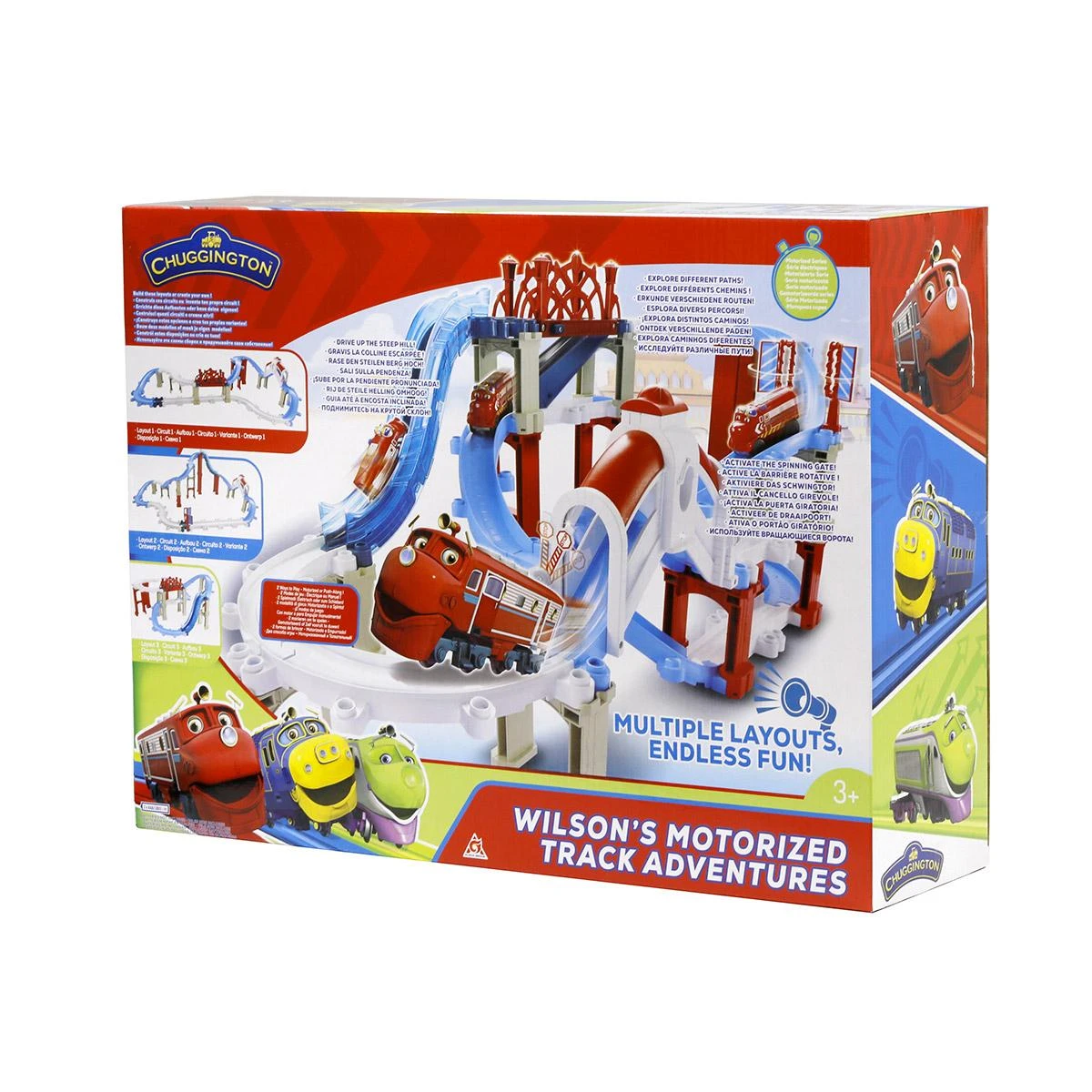 Retrouve l’univers de la série TV Chuggington, diffusée sur TFOU et recrée les aventures de la célèbre locomotive Wilson avec ce playset 3 en 1 ! Pour toujours plus d’aventures et de fonctions de jeu, les rails de ce circuit peuvent être assemblés de 3 manières différents permettant ainsi de créer 3 univers de jeux complètements différents ! Une locomotive Wilson de 9,5 cm de long est incluse avec le playset; elle est équipée d’une double fonction de jeu : un mode de mouvement automatique grâce à un système de piles, ou un mode manuel avec un mouvement de type roues libres. C’est partie pour l’aventure !