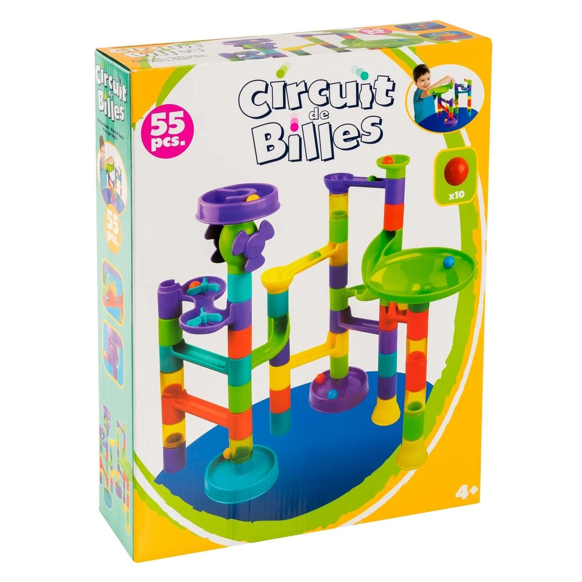 Ce circuit coloré de 55 pièces à monter soi-même ravira votre enfant qui pourra y faire rouler ses billes !