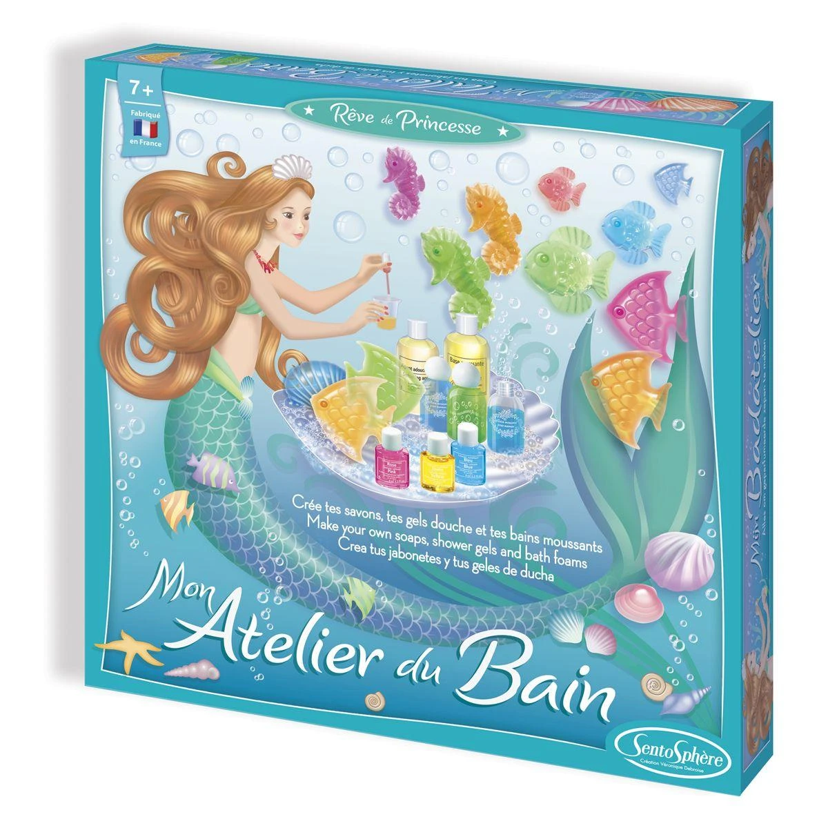 Faites découvrir aux plus jeunes les principes de la fabrications des produits de beauté avec le coffret Mon atelier du bain de Sentosphère. Ce coffret contient tout le nécessaire pour créer ses propres savons et bains moussants aux couleurs des fonds marins et aux senteurs florales et fraîches.