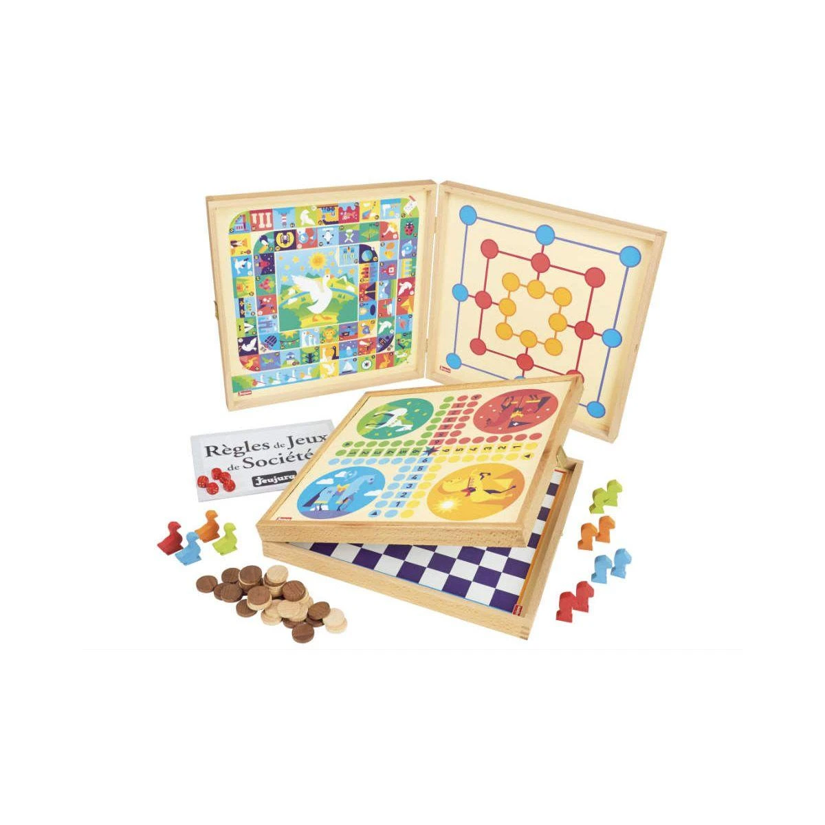 Découvrez ou redécouvrez les grands jeux classiques ! Jeu de dames, de l’oie, des petits chevaux : choisissez un jeu et partagez des moments ludiques en famille ou entre amis. Ce Coffret de jeux classiques – 50 règles de Jeujura contient le nécessaire pour jouer, apprendre à respecter les règles et s’amuser.
