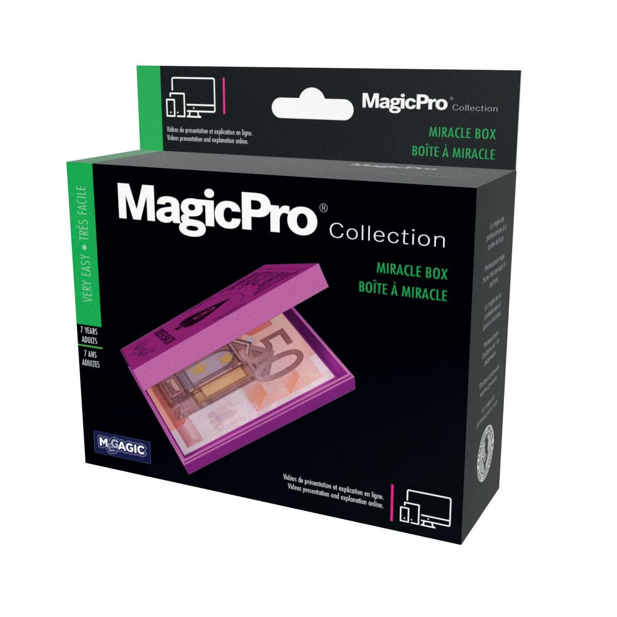 Une boite au pouvoir extraordinaire. Grâce à un système secret astucieux et indétectable, elle permet de transformer par exemple un billet de 5€ en un billet de 10€, de prédire la carte à jouer qu’un spectateur va choisir, ou bien de reconstituer une carte de visite déchirée.