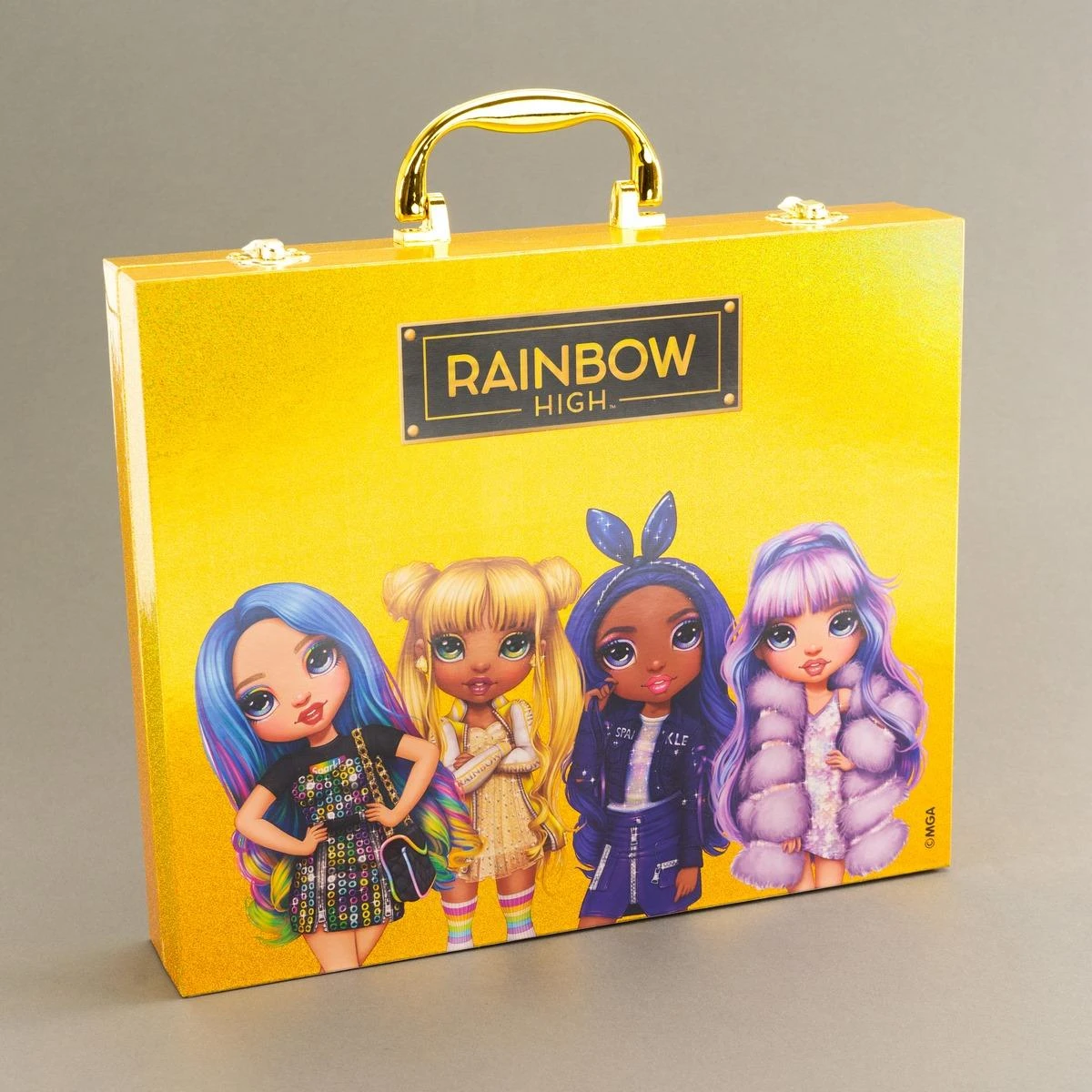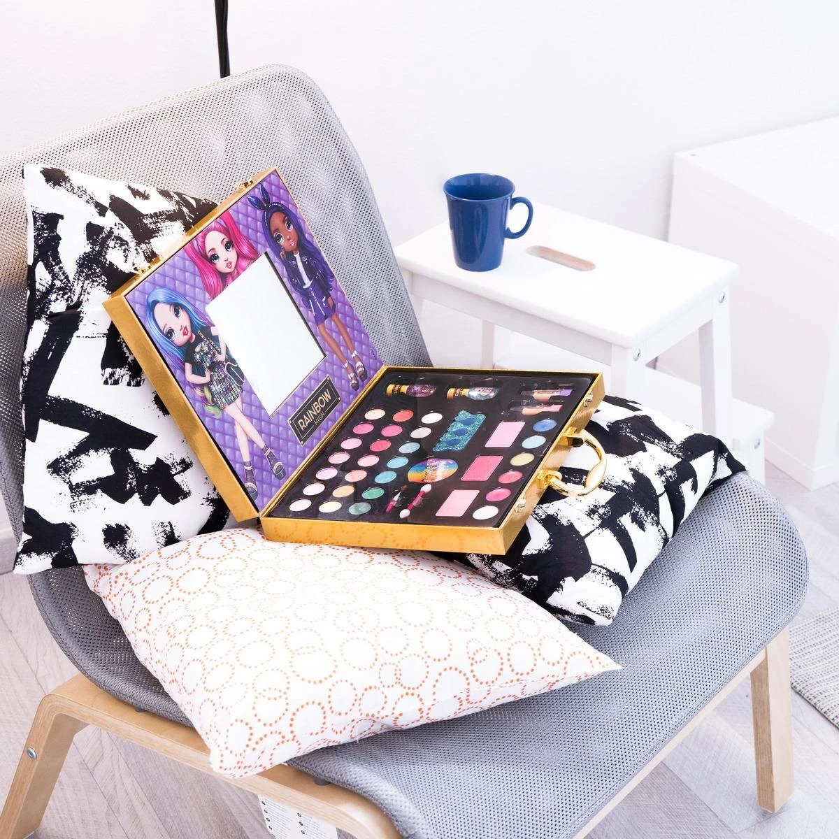 Avec le Coffret de maquillage Rainbow High on entre dans le monde glamour et scintillant des poupées Rainbow High ! Votre enfant libère son imagination, invente des histoires tout en stimulant sa dextérité et sa coordination. Bon à savoir : le Coffret de maquillage Rainbow High est fabriqué avec des matériaux testés, sans paraben et non toxiques. Le maquillage se retire facilement à l’aide d’eau et d’un détergent doux. Le Coffret de maquillage Rainbow High contient 21 ombres à paupières, 6 brillants à lèvres, 3 fards à joues, 2 vernis à ongles,1 lime à ongles, 2 bâtons de brillant à lèvres et 1 mode d’emploi.