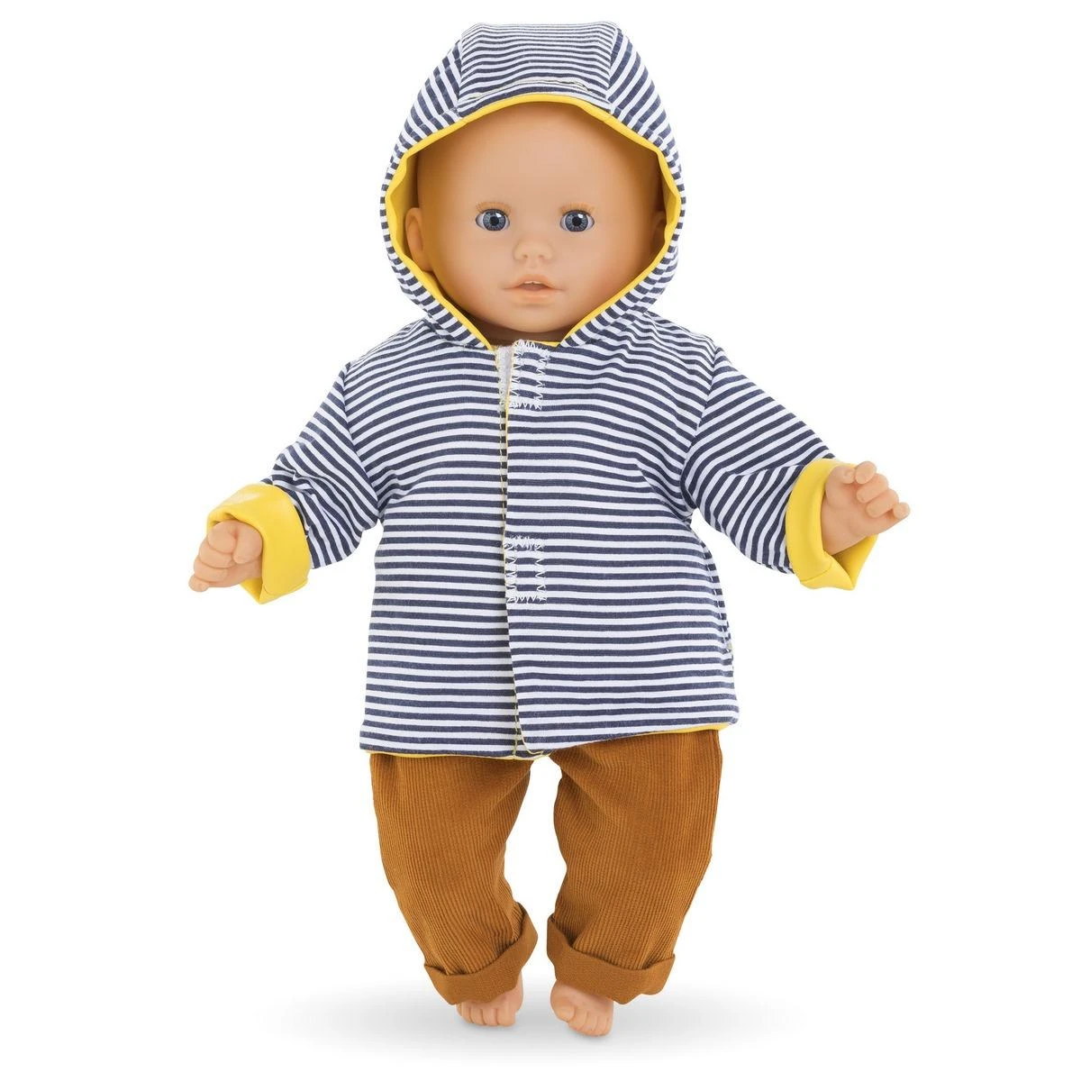 Ouille, il pleut, il mouille… Le Ciré réversible Bords de Loire – Mon premier poupon 30 cm est idéal pour protéger les petits poupons des intempéries ! Confectionné dans des matières douces et résistantes, le Ciré réversible Bords de Loire – Mon premier poupon 30 cm est facile à enfiler grâce aux bandes auto-agrippantes adaptées à la dextérité des petites mains de votre enfant.