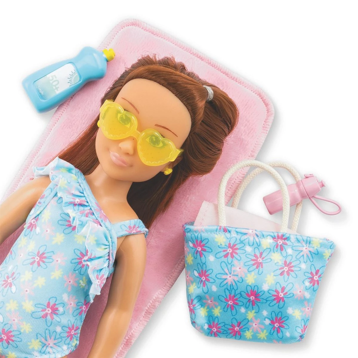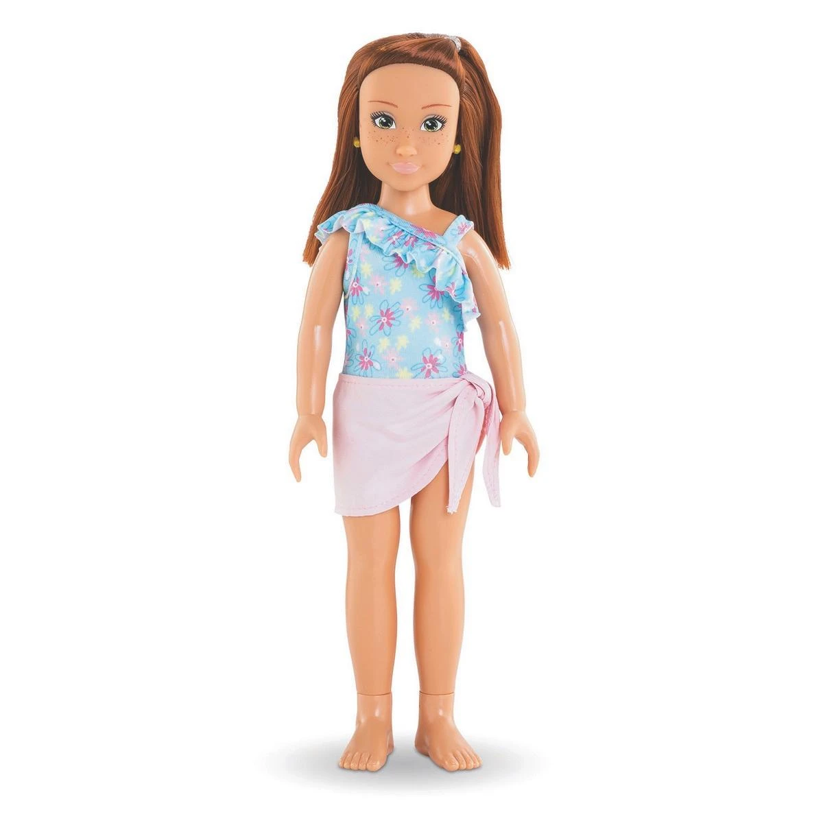 Issue de la marque Corolle, Corolle Girls : Coffret Zoé à la plage fait partie de la collection Corolle Girls. Ce coffret renferme une poupée mannequin de 28 cm nommée Zoé ainsi que 5 accessoires pratiques : une crème solaire protectrice, une paire de lunettes de soleil, une gourde, une serviette de plage et un sac de plage. Zoé, dotée d’un visage naturel et d’un nez fin, exhale une douce odeur de vanille. Ses yeux peints et ses cheveux mi-longs roux ajoutent une touche d’élégance à son charme. Elle porte un ravissant maillot de bain, un paréo assorti et des boucles d’oreilles amovibles. Avec un corps réaliste de jeune adolescente et une capacité à se tenir debout ou assise sans support, cette poupée est un joyau de raffinement.