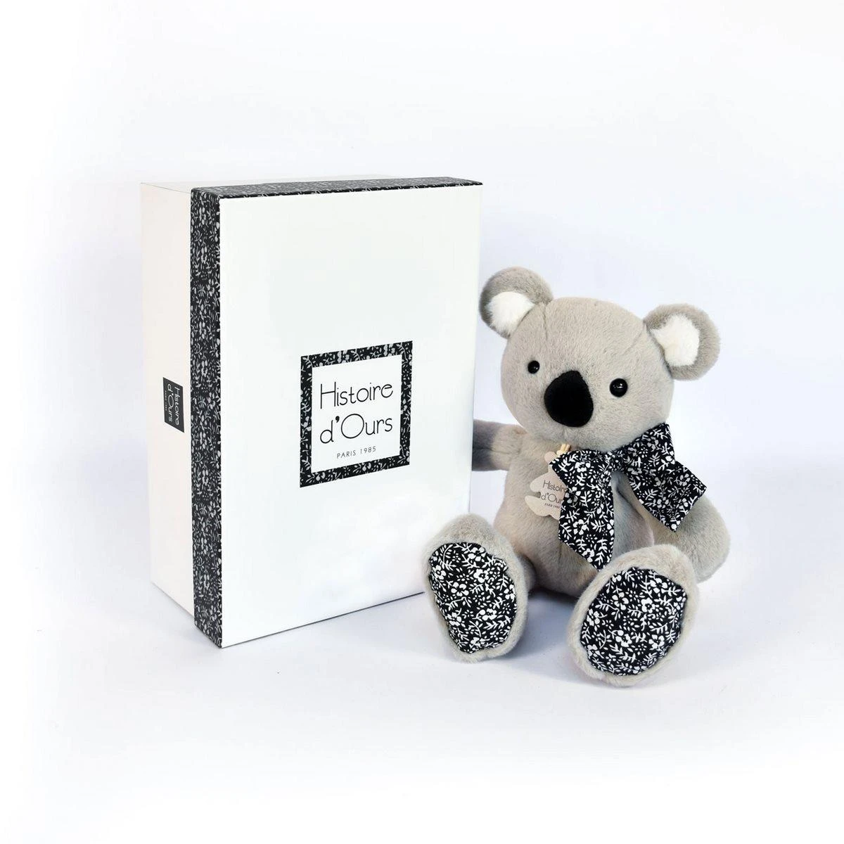 La peluche Koala Gris – 25 cm – Copains Câlins d’Histoire d’Ours arbore un beau gris chaud associé à un joli imprimé floral. Ce pantin Koala souple promet douceur et séduction pour petits et grands.