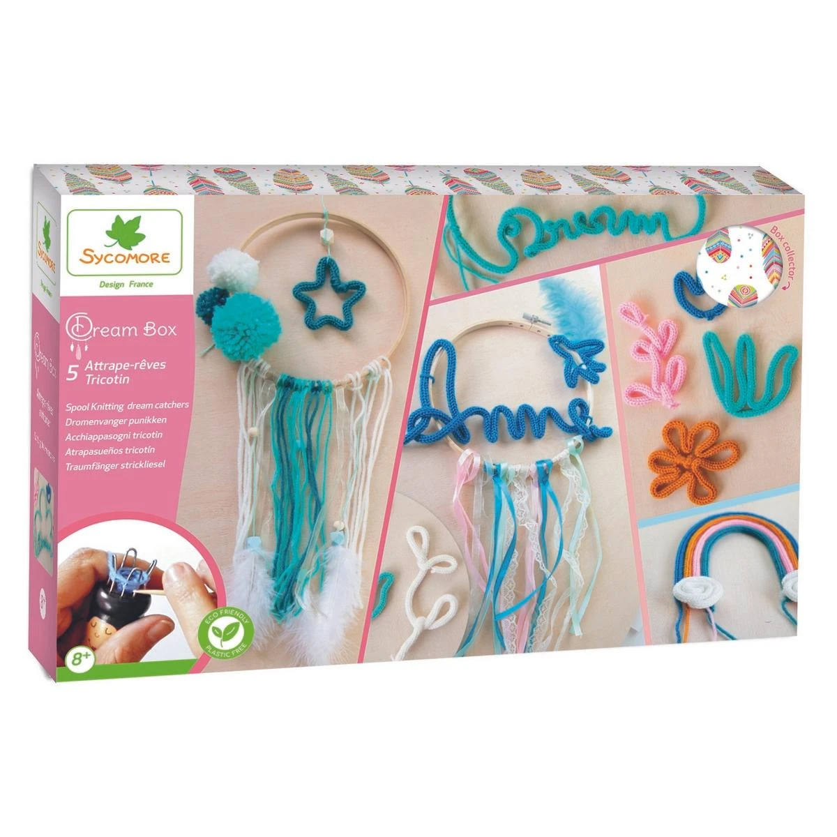 Chassez les mauvais esprits loin de vos enfants pour qu’ils fassent de beaux rêves ! Le Dream Box – XL Attrape-rêves Tricotin est un kit d’objet artisanal d’origine ojibwé composé d’un cerceau et d’un réseau de fils en forme de filet. Tout y est pour réaliser tout ce que vous imaginez, mais pour y arriver, il faut avoir les matériaux nécessaires. L’objectif est de fabriquer une décoration de rêve avec du tricotin mécanique et des accessoires. Leur but est de protéger les tout-petits pendant leur sommeil en chassant les mauvais rêves et les cauchemars.