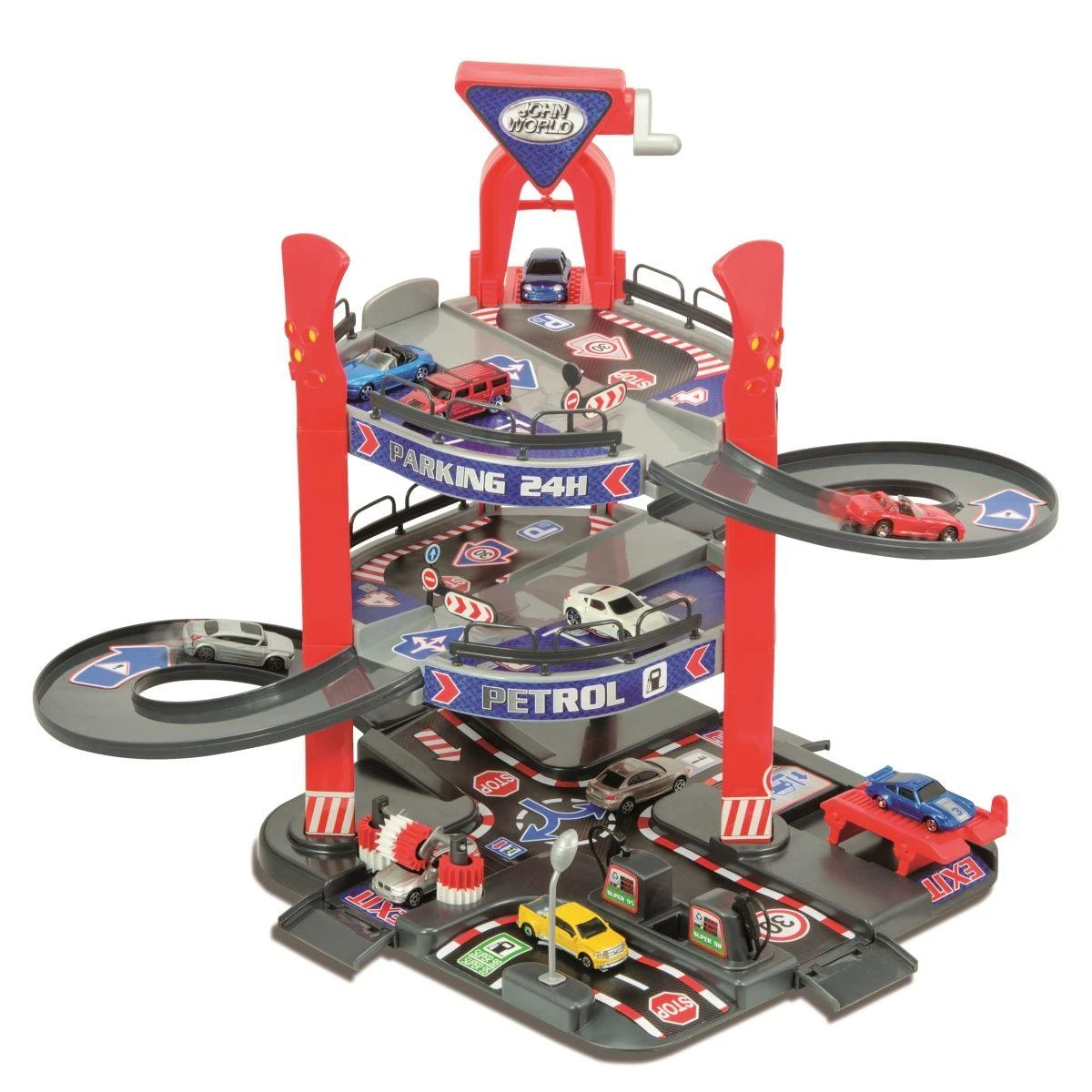 Votre petit pilote réalise d’incroyables cascades dans ce garage 3 étapes de la marque John World City pour son plus grand bonheur ! Une rayure ? Un peu de saleté ? Plus d’essence ? Pas de panique ! Ce garage est doté d’une station de lavage et d’une station-service !