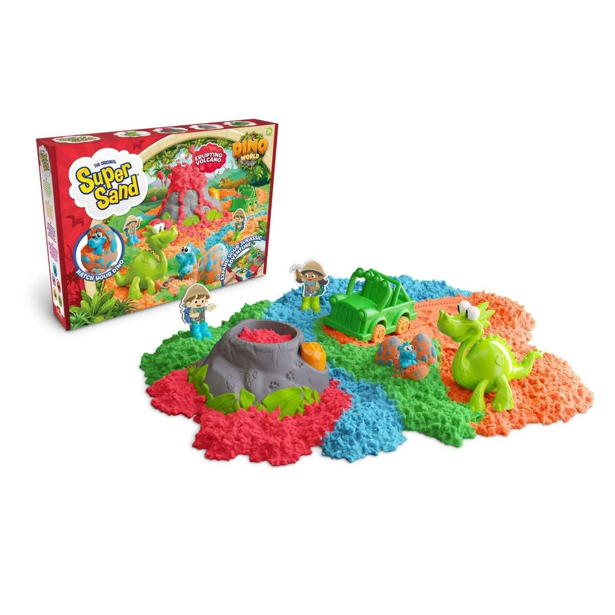 Le nouveau coffret Super Sand Dinosaure World transporte dans le monde des dinosaures ! Il permet de reconstituer le monde des dinos et de leur redonner vie. Que de sensations au bout des mains ! Le pack se transforme pour devenir un véritable décor et le sable permet de représenter les espaces : forêt, lac, chemin…Ensuite, il ne reste plus qu’à s’amuser en créant des traces dans le sable, gérer la ponte et l’éclosion des œufs, fabriquer un volcan en éruption… Super Sand Dinosaure World de Goliath est idéal pour créer et imaginer des histoires à l’infini ! Une idée cadeau parfaite pour les fans de dinosaures et de loisirs créatifs !