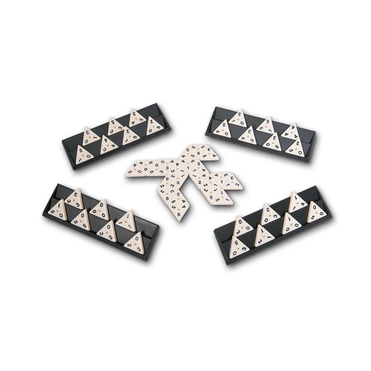 Triominos Deluxe par Goliath est un jeu stratégique passionnant. Ces dominos triangulaires rendent les parties encore plus ludiques. Le but du jeu est de parvenir à poser tous ses dominos avant ses adversaires