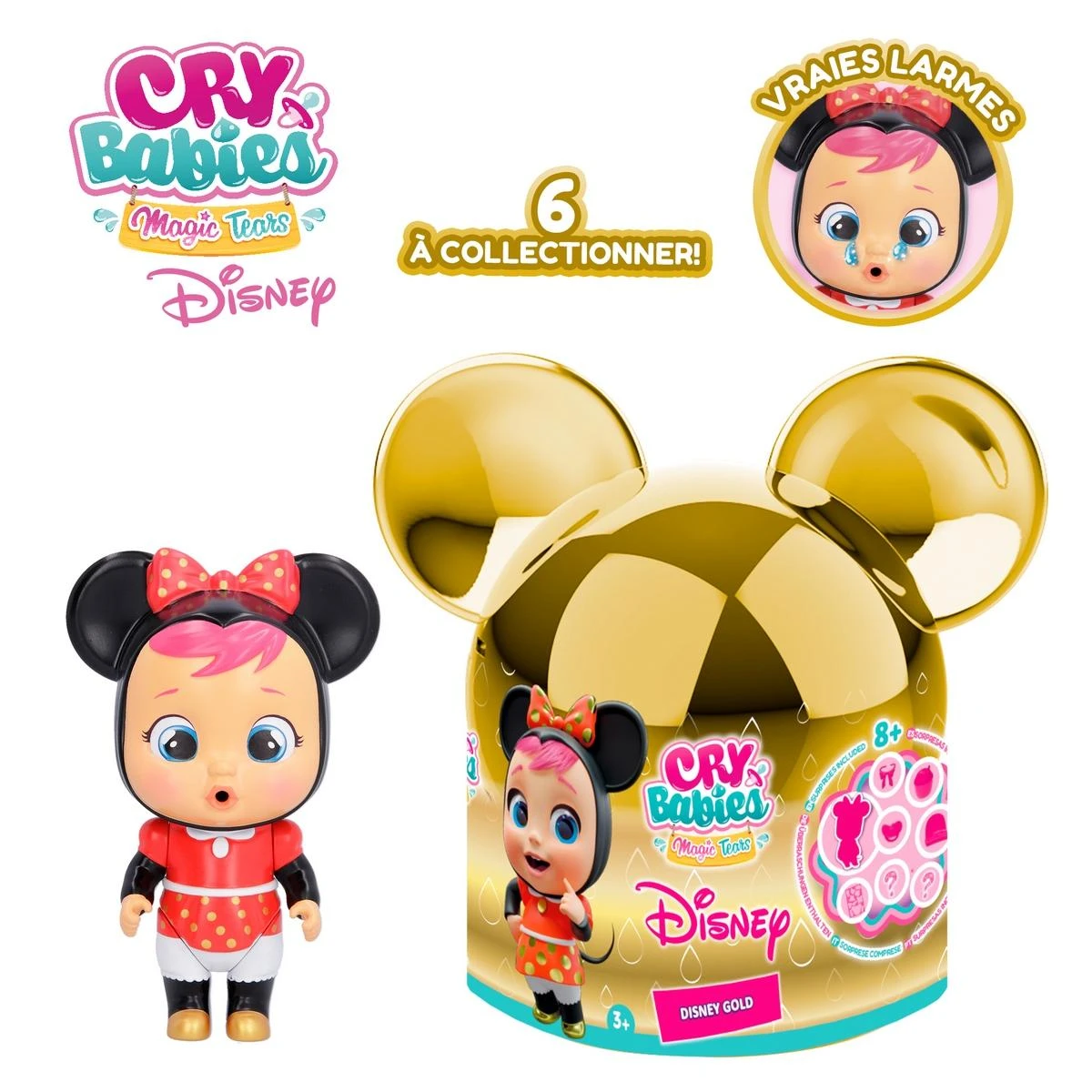 Cry Babies – Maison Disney éditions Gold est une capsule surprise qui cache des mini poupées inspirées des personnages emblématiques Disney. Leur particularité ? Elles pleurent de vraies larmes lorsqu’on leur appuie sur le ventre. 7 personnages à collectionner : Dumbo, Minnie, Mickey, Daisy, Olaf, Bambi, Winnie. L’idée cadeau parfaite pour les fans de Disney.
