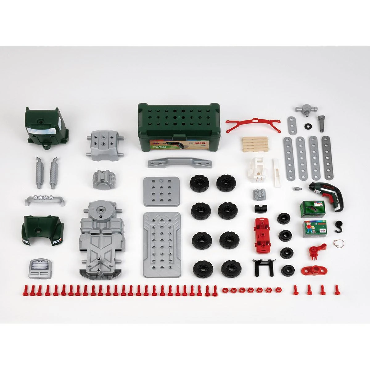 Découvrez sans plus attendre le camion de bricolage sous licence BOSCH ! Un set de construction de plus de 80 pièces ! A l’aide de votre visseuse BOSCH Ixolino, construisez pièce par pièce : l’avant du camion également appelé le « tracteur », la remorque, une grue qui peut être montée à l’avant ou à l’arrière de la remorque, un chariot élévateur avec palette, une remorque « caisse à outils ».
