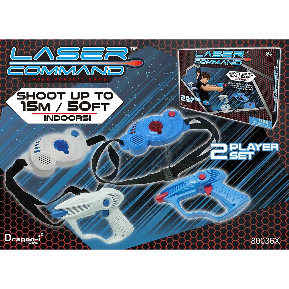 Dans ce jeu laser à 2 joueurs utilisant un faisceau infrarouge sécurisé, qui sera le plus rapide et le plus précis pour toucher l’autre ? Laser Command Pursuit Challenge comprend une ceinture et des sons réalistes pour encore plus de fun ! Les enfants peuvent tirer avec leurs pistolets laser jusqu’à 20 m de distance !