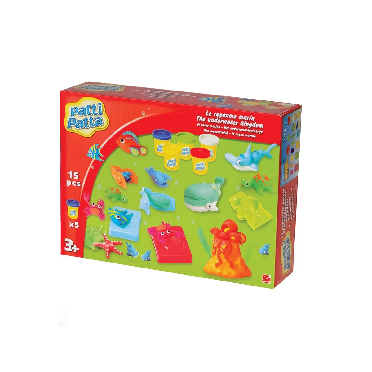 Reproduis mammifères marins, coquillages et crustacés avec les 12 moules et accessoires inclus dans ce coffret Le Royaume Marin – Pâte à modeler Patti Patta.