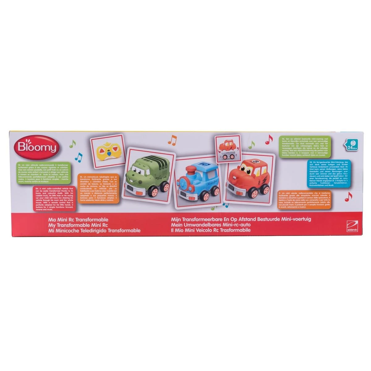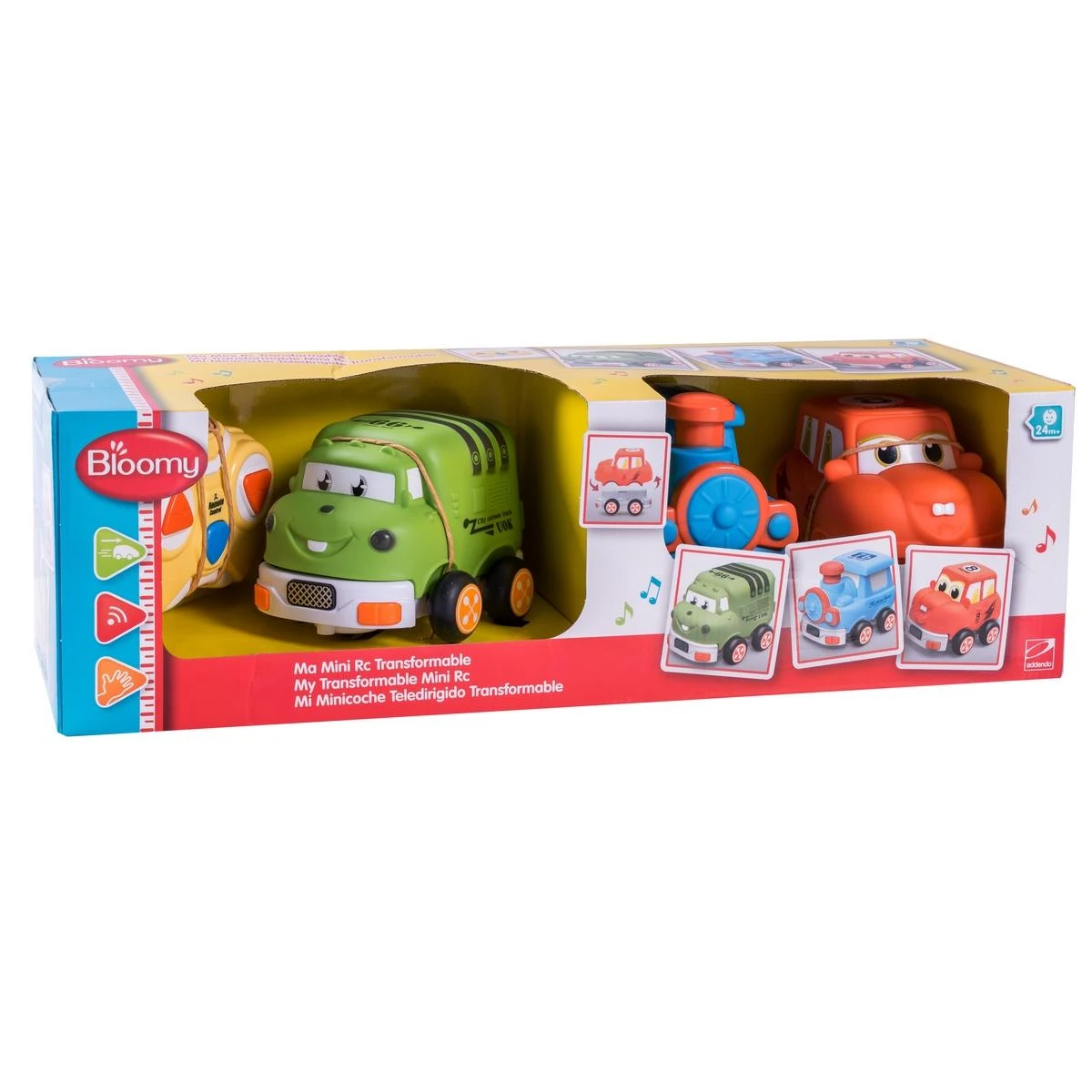 En avant toute ! Ma Mini radiocommandée transformable de Bloomy est un mini véhicule radiocommandé rigolo comme tout. Il se transforme facilement grâce à ses coques rigolotes et colorées. Avec son camion poubelle, son petit train ou sa voiture de course, votre enfant s’amuse à diriger son véhicule à travers sa chambre et toute la maison. Pour cela, il dispose d’une télécommande parfaitement adaptée à ses petites mains. Tout en jouant, il développe sa coordination oeil-main, ses réflexes et sa motricité fine.