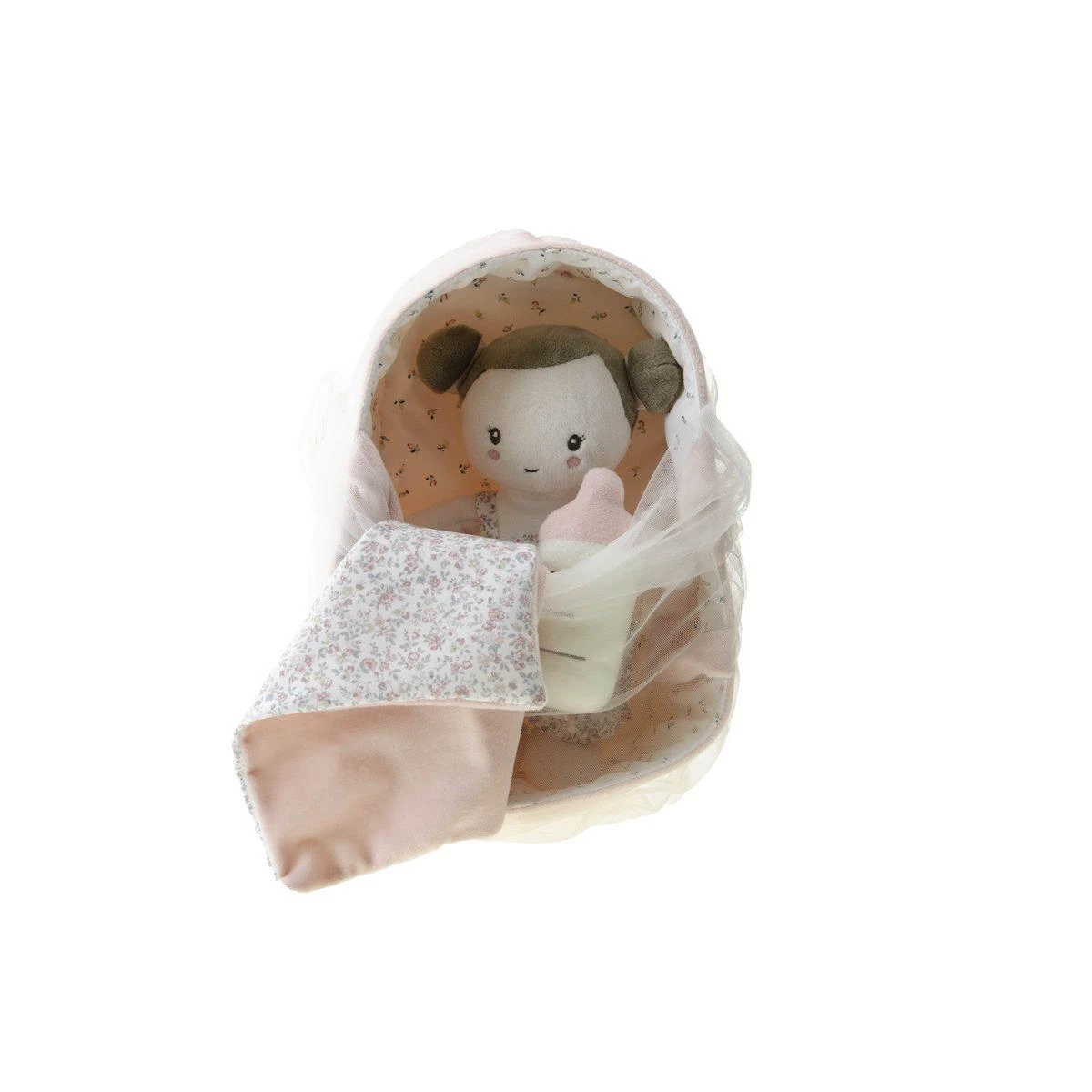 Ma première poupée de Calinou est une poupée en chiffon avec couffin, couverture et biberon.