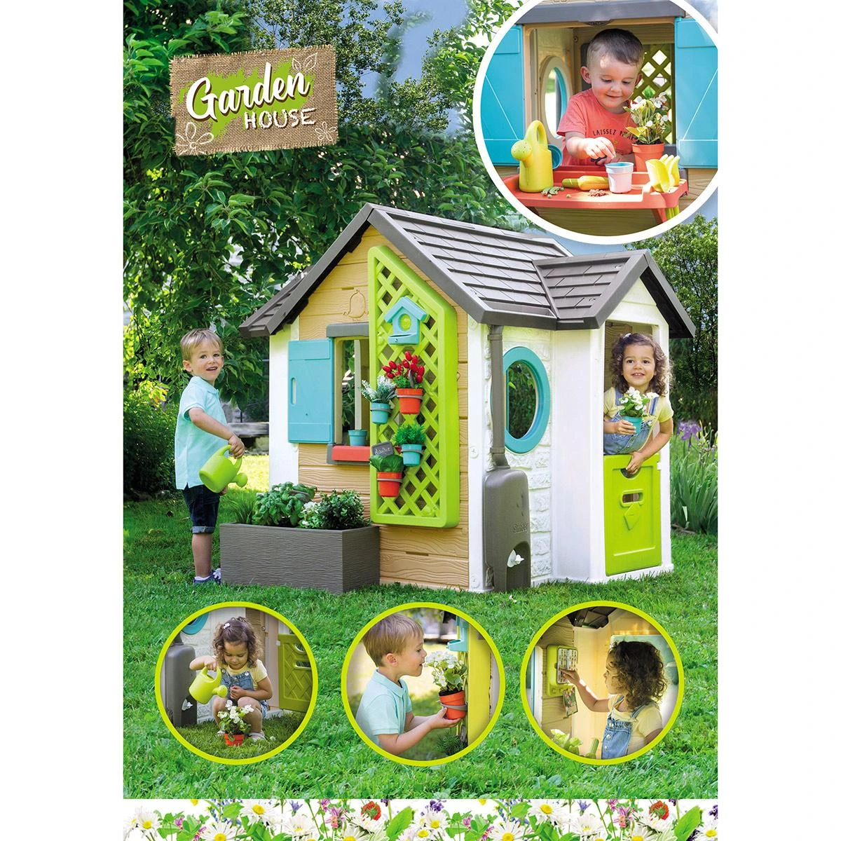 Equipée de 2 portillons, de 2 fenêtres avec volets battants et de 2 hublots, la Garden House dispose également de nombreuses fonctions de jeu : une grande jardinière, un treillis permettant d’accrocher des petits pots et la mangeoire à oiseaux, et un récupérateur d’eau avec son arrosoir. Un plan de travail nomade permettra à votre enfant d’avoir tout à portée de main grâce aux divers supports et espaces de rangement !