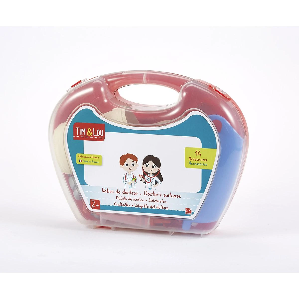 Cette mallette de docteur de la marque Tim & Lou comprend 14 accessoires : stéthoscope, seringue, ciseaux, perfusion, pansements, plâtre, thermomètre, lunettes… Votre enfant va pouvoir vous soigner et soigner ses copains et copines, comme un vrai docteur ! En jouant au docteur, il développe son imagination et invente plein d’histoires.