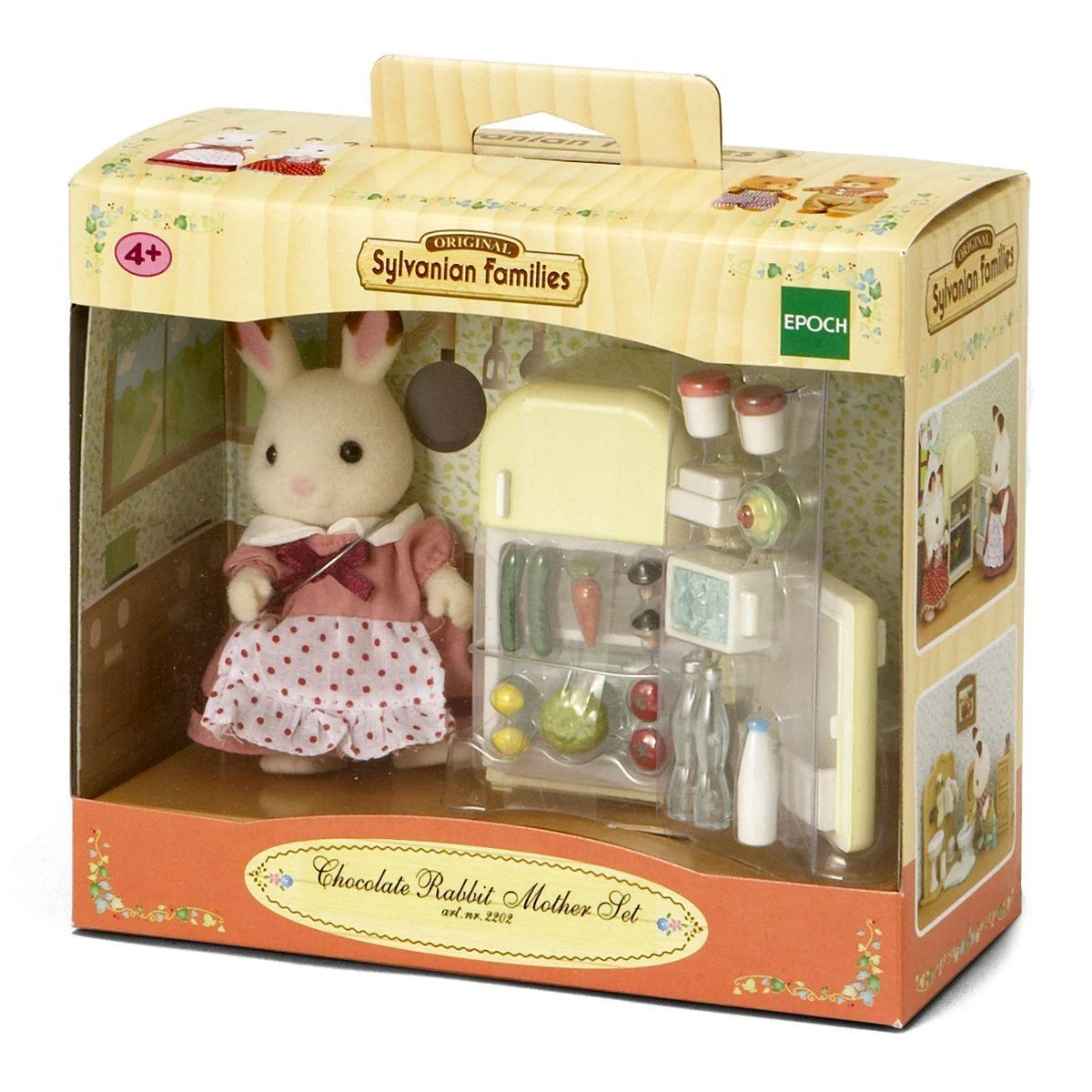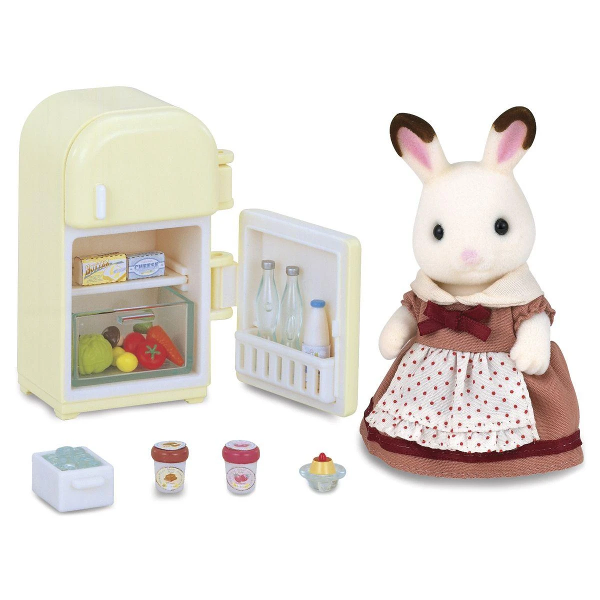 Le coffret contient : un réfrigérateur, une figurine Maman Lapin Chocolat Sylvanian et 14 accessoires : des légumes, des glaçons, des bouteilles d’eau, du lait, des pots de glaces, du beurre…