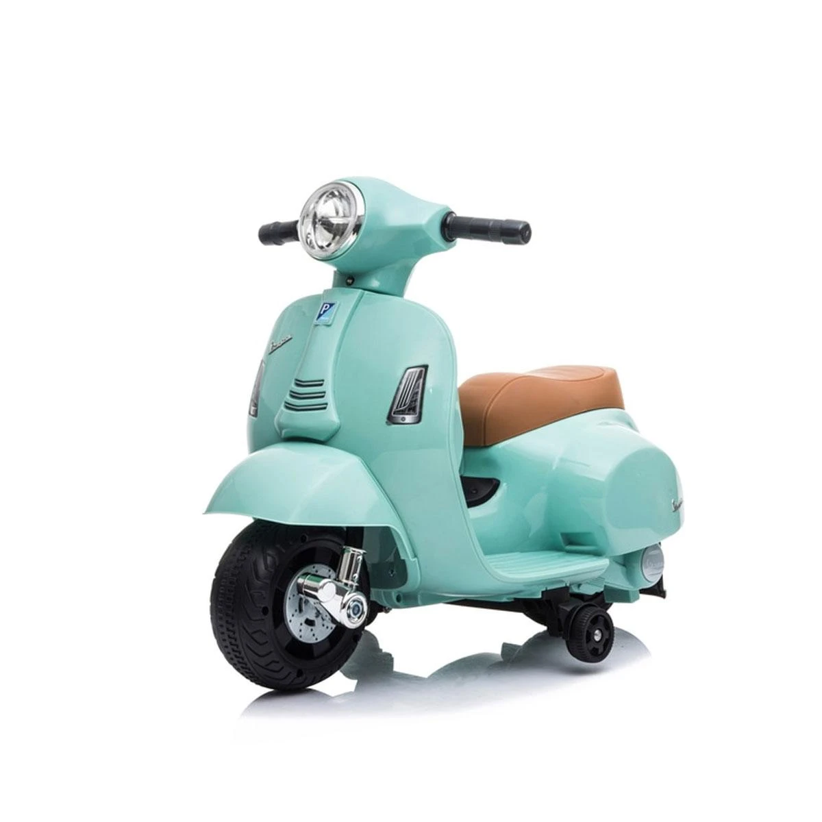 En route les petits bouts ! Les plus petits ont maintenant leur véhicule avec cette mini Vespa GTS électrique et lumineux de MGM! Découvrez ce petit bijou à la couleur vert d’eau. Ce mini vespa GTS électrique est lumineux. Le phare s’allume quand on appuie sur la pédale. Avec à ce porteur, l’enfant peut se déplacer tout en acquérant la motricité ainsi que le control de l’espace.