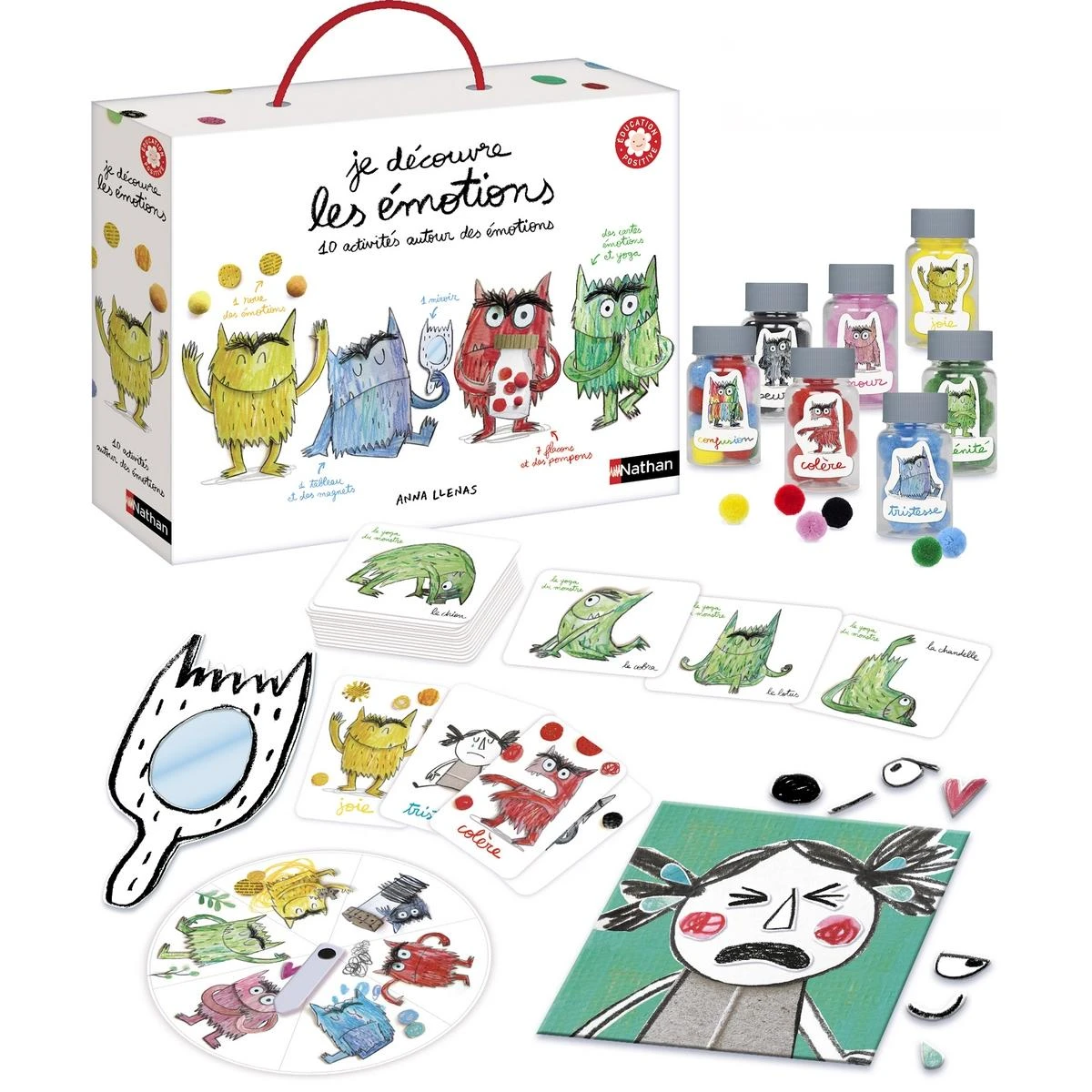 Le coffret « Je découvre les émotions » de Nathan accompagne votre enfant dans la gestion des ses émotions. Plusieurs activités lui son proposées pour découvrir, nommer, faire le tri et accueillir ses émotions : le miroir du monstre, le tableau magnétique des émotions, les cartes découverte, les flacons des émotions, le retour à la sérénité.