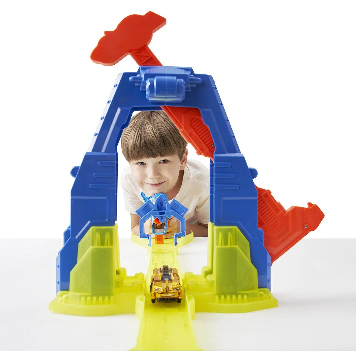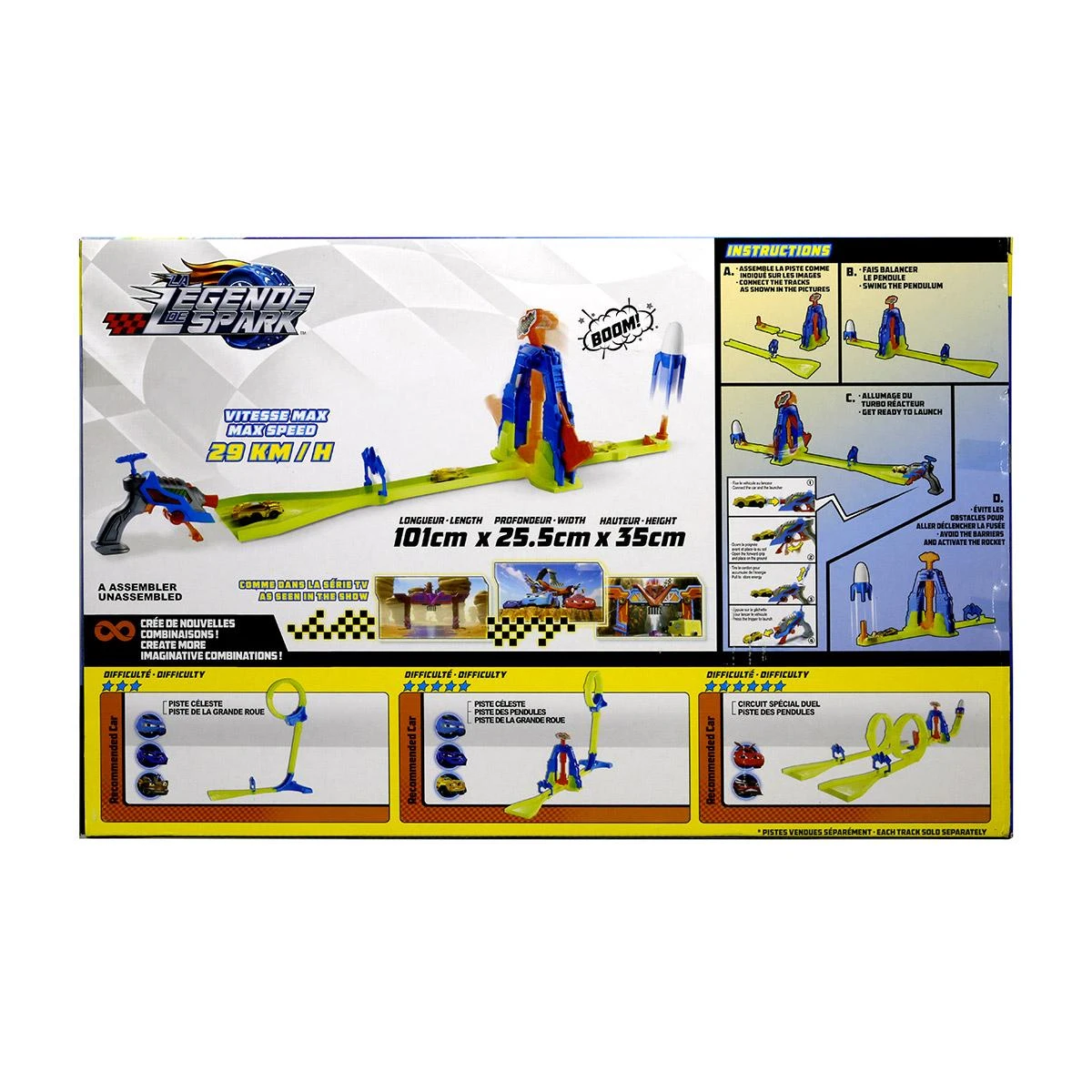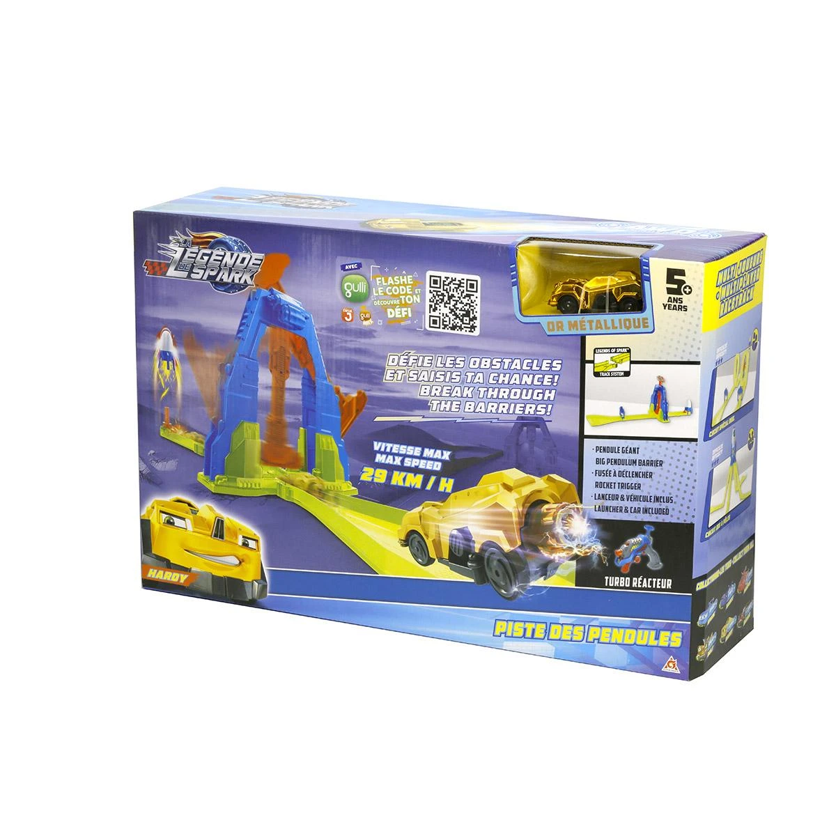 Recrée à la maison les challenges les plus fous de tes héros de la série TV La Légende de Spark, diffusée sur Gulli. Défie la piste des pendules, avec son pendule géant à bascule, évite les obstacles pour déclencher la fusée. Fixe ton véhicule Hardy au lanceur, actionne la poignée arrière pour accumuler de l’énergie et appuie sur la gâchette : Turbo enclenché, plein gaz ! Propulse ton véhicule à la MEGA VITESSE de 29 km/h et tente de devenir un Turbo pilote !