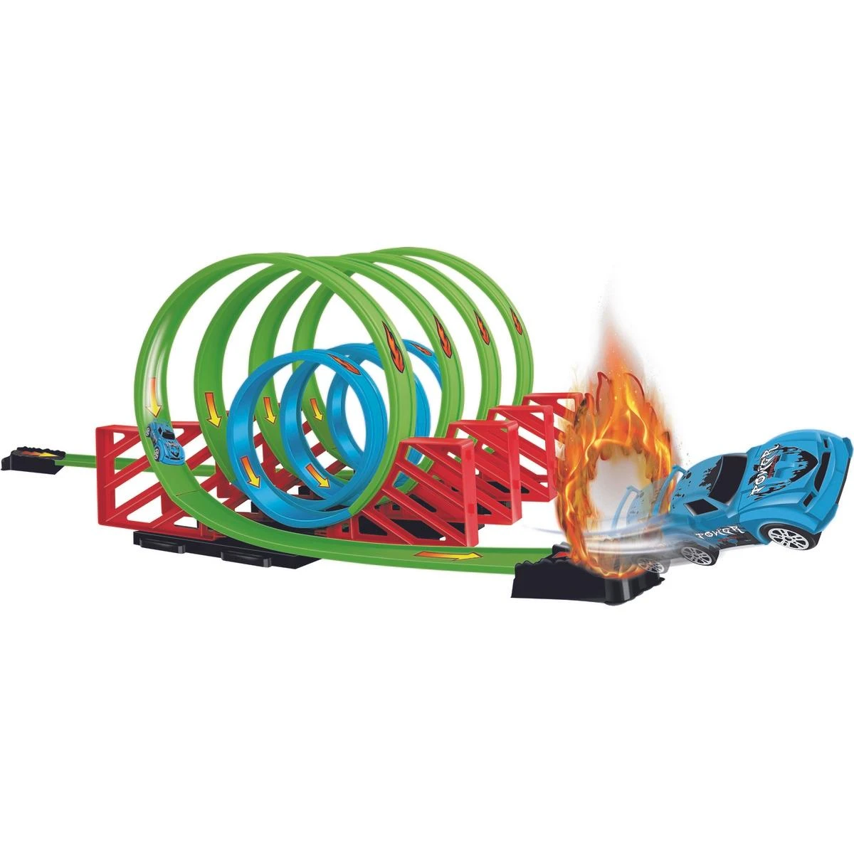 La voiture à rétro-friction fonce à toute allure sur la piste looping de John World. Elle enchaîne les loopings et jaillit à travers la porte de feu. Cette piste looping fait son effet. Inspiré, votre enfant crée de super cascades. Il peut aussi jouer avec sa voiture à rétro-friction indépendamment du circuit et faire de super courses. Peut-être même aurez-vous envie de la lui emprunter pour un looping ou deux.