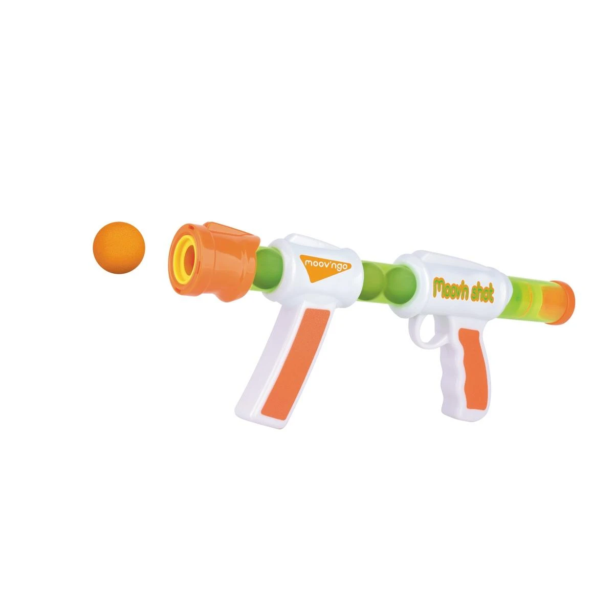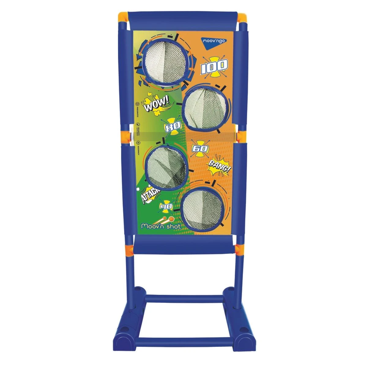 Le pistolet est amusant : il tire jusqu’à 8 mètres ! Une belle idée cadeau pour organiser des tournois au fond du jardin. Le gagnant est celui qui aura marqué le plus de points ! Le coffret Moov N Shot Cible Mobile contient 1 cible mobile avec 1 pistolet à air comprimé à balles en mousse. Il y a 15 balles incluses. Dimensions : 40.5 cm x 30 cm x 99 cm environ. Fonctionne avec 4 piles AA(LR6) non incluses.