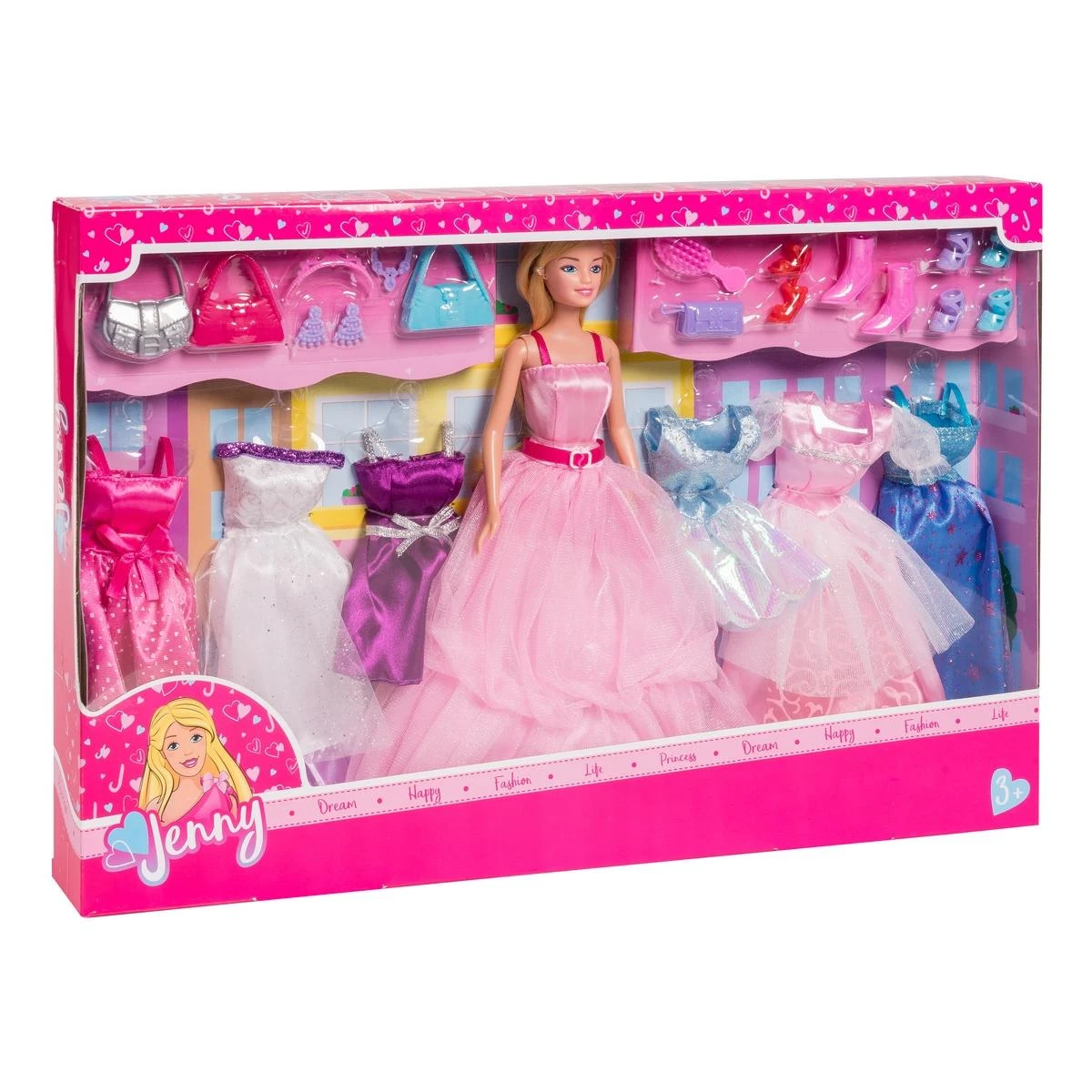 Votre enfant retrouve la fameuse poupée mannequin Jenny et imagine plein d’histoires avec les nombreuses robes et accessoires contenus dans ce coffret.