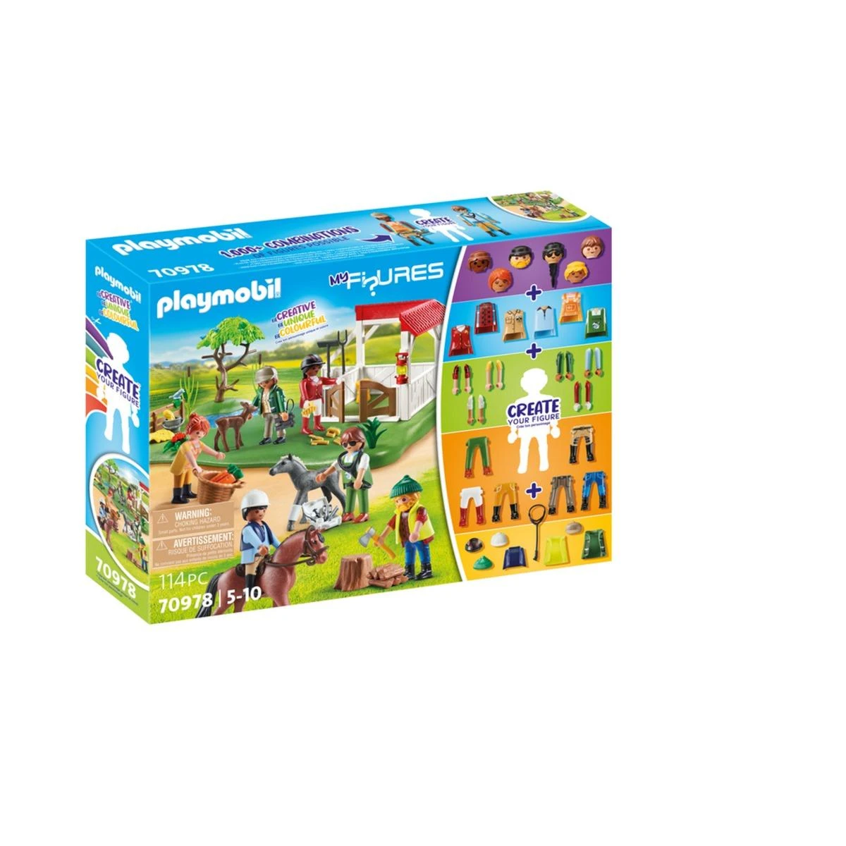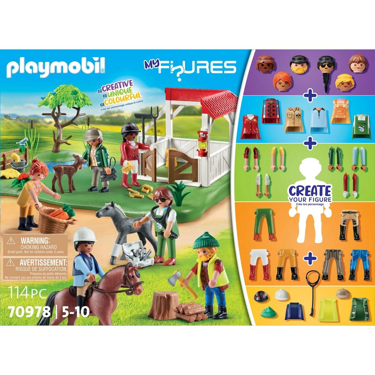 Que de travail ! Avec le Ranch équestre Playmobil My Figures 70978, on prend grand soin des chevaux ! On nettoie leur box, on apporte de la nourriture fraîche, et on les entraîne à faire de longues promenades en forêt… Avec les nouveaux Playmobil My Figures, votre enfant imagine des personnages à l’infini et crée un monde Playmobil qui lui ressemble ! Plus de 1000 combinaisons sont possibles ! Les bras, les jambes, les têtes des 6 personnages peuvent être échangés. Les sets My Figures permettent de libérer sa créativité et sa capacité à inventer des histoires seul ou avec ses amis. Le Ranch équestre Playmobil My Figures 70978 inspire plein d’aventures…