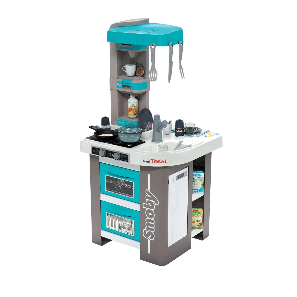 Un régal pour s’amuser à cuisiner comme un Chef ! La Cuisine Studio Bubble Tefal offre une grande surface de jeu à 360° avec de nombreuses fonctionnalités pour votre enfant. Avec la fonction Magic Bubble, une fois que la casserole est posée sur le feu, on entend l’eau « bouillir » ! La cuisine est composée de : 1 hotte, 1 machine à Espresso à capsules, 1 machine à soda, 1 évier, 1 plaque de cuisson, 1 four, 1 lave vaisselle, 1 frigo, et de nombreux espaces de rangement. Hauteur du plan de travail : 50.5 cm. 28 accessoires inclus : 3 ustensiles barbecue, 2 fourchettes, 2 couteaux, 2 cuillères, 2 assiettes, 2 verres, 2 tasses, 3 capsules à café, 1 soda, 1 poêle, 1 faitout, 1 couvercle faitout, 2 boites factices, 1 crêpe, 2 moulins sel-poivre cric cric et 1 panier lave vaisselle. Fonctionne avec 3 piles LR03 non incluses. Bon à savoir : la Cuisine Studio Bubble Tefal de Smoby est fabriquée en France.