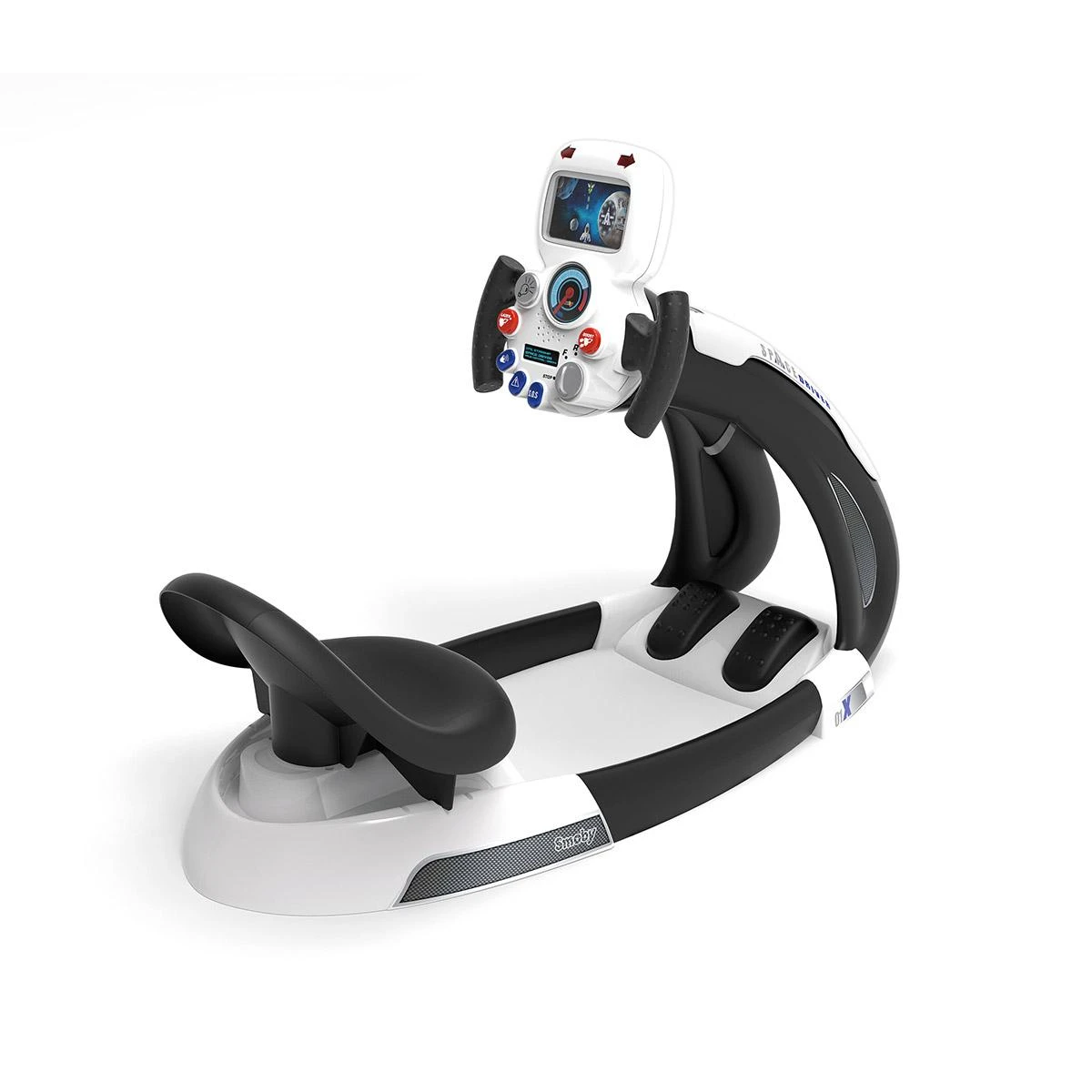 Grâce au simulateur de conduite Space Driver de Smoby, tu vas pouvoir plonger dans l’univers de l’espace ! Avec l’assise très confortable et les 3 positions de conduite, tu pourras passer des heures entières à jouer tout en étant à l’aise ! Son volant électronique avec circuit animé et écran rétro éclairé saura te satisfaire puisque tu seras directement plongé dans l’Univers aux commandes d’une navette spatiale ! Pour encore plus de réalisme, près de 15 sons et une simulation de panne y sont intégrés. La fonction boost et la marche arrière donnent encore plus de possibilités de jeu !