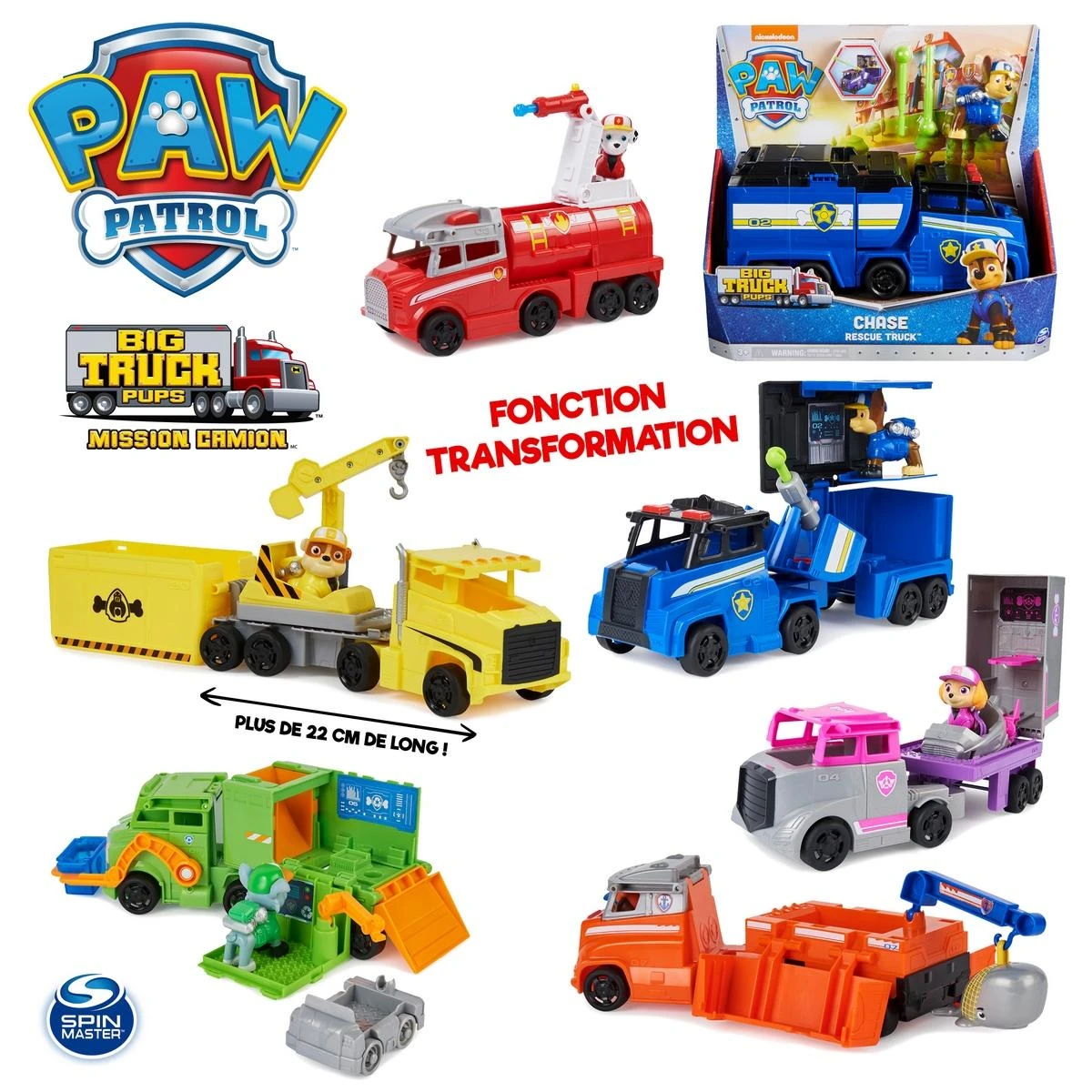 Avec le Camion Big Truck Pups et figurine Pat’Patrouille retrouve tes personnages prĂ©fĂ©rĂ©s sur le thème Big Truck Pups. C’est un camion avec transformation unique et mĂŞme dans certains cas des projectiles (selon le modèle) pour partir en mission dans les meilleures conditions ! Le coffret Camion Big Truck Pups et figurine Pat’Patrouille contient : 1 vĂ©hicule +1 figurine Pat’ Patrouille Big Truck Pups. Taille du camion : environ 22 cm de long. Plusieurs modèles sont disponibles : Chase, Marcus, Stella, Ruben, Rocky et Zuma. Une idĂ©e cadeau qui peut se complĂ©ter pour crĂ©er une sympathique collection Pat Patrouille et inventer plein d’histoires. OĂą est encore parti Marcus ?