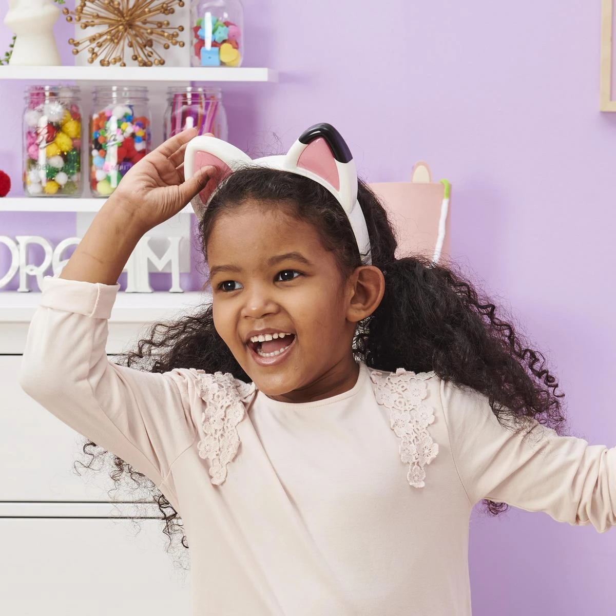 Avec les Oreilles musicales – Gabby et la Maison Magique on s’évade dans l’univers de Gabby grâce à ces oreilles à porter avec effets sonores et lumineux ! Pour revivre les scènes du dessin animé, il y a 3 modes de jeu à activer en appuyant sur les boutons situés sur les oreilles.