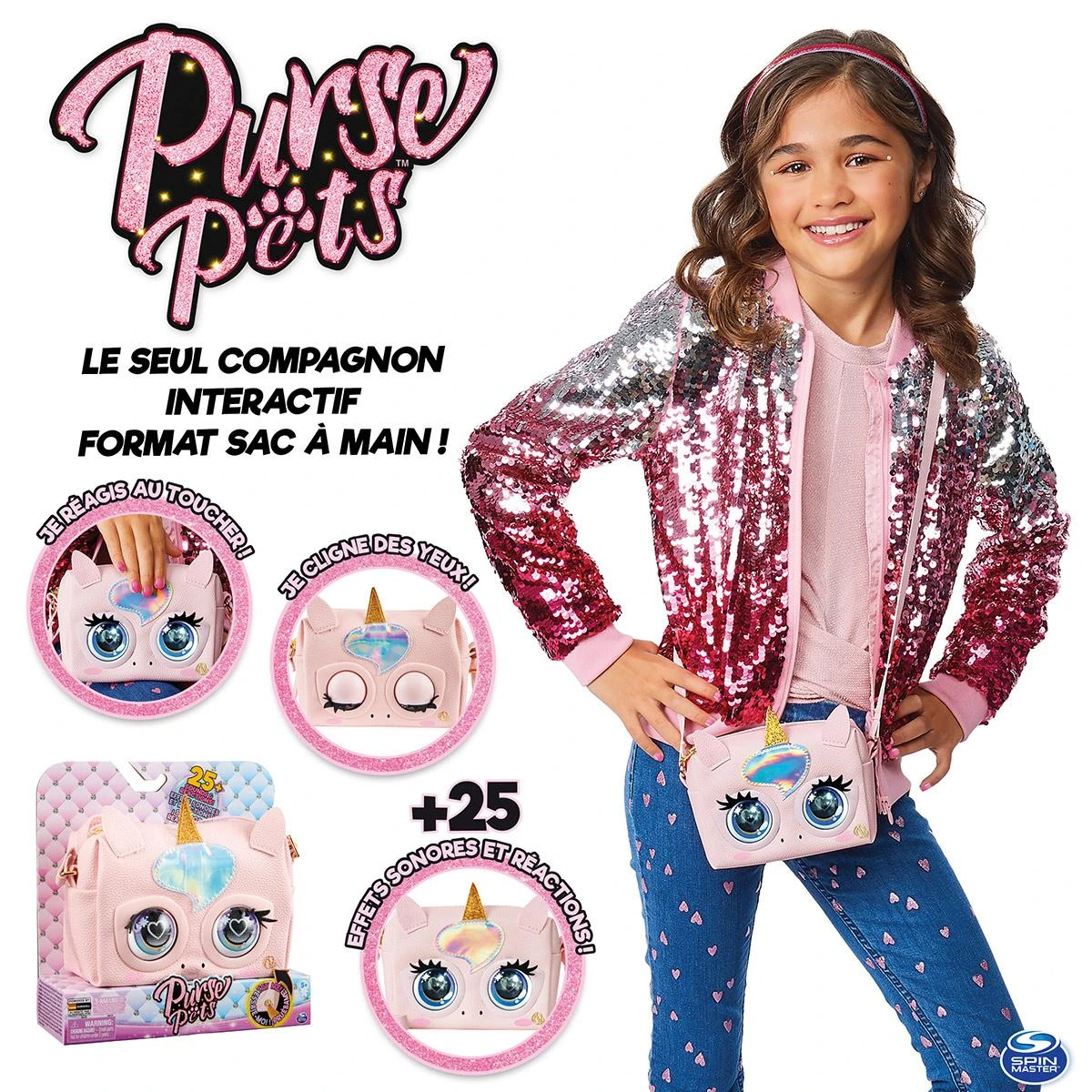 Le Purse Pets : Sac à main Licorne de Spin Master est interactif : il cligne des yeux et interagit avec l’enfant. Prêt à porter et pratique pour ranger ses objets préférés, il dispose de sa propre personnalité.