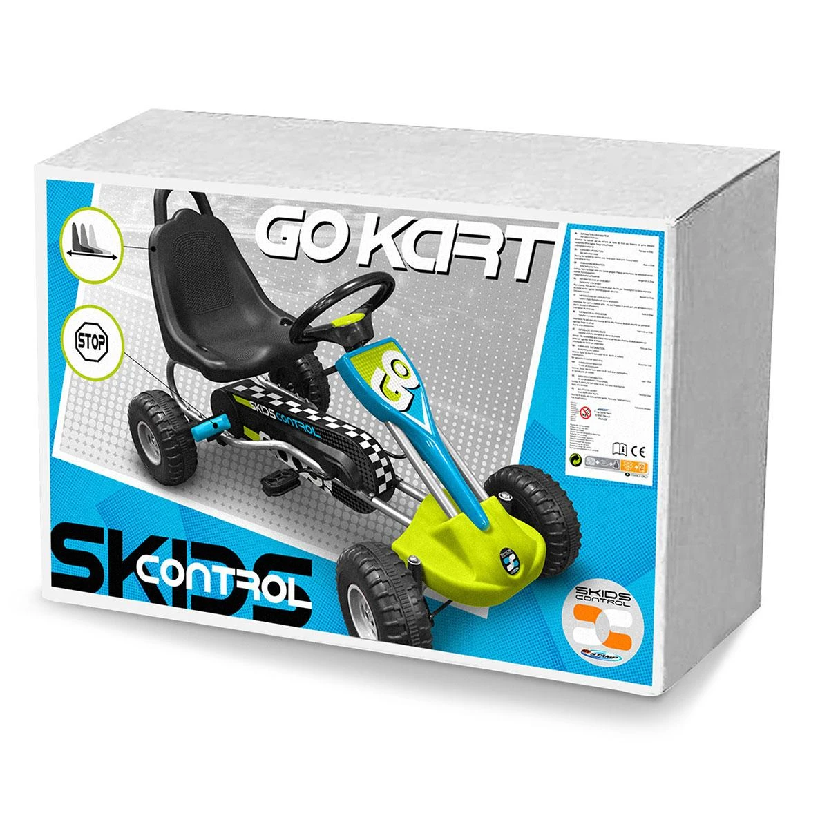 Caractéristiques : Go kart à pédales – siège réglable – frein à main – Cadre acier- Garde chaîne fermé – Roues PP 190 mm.